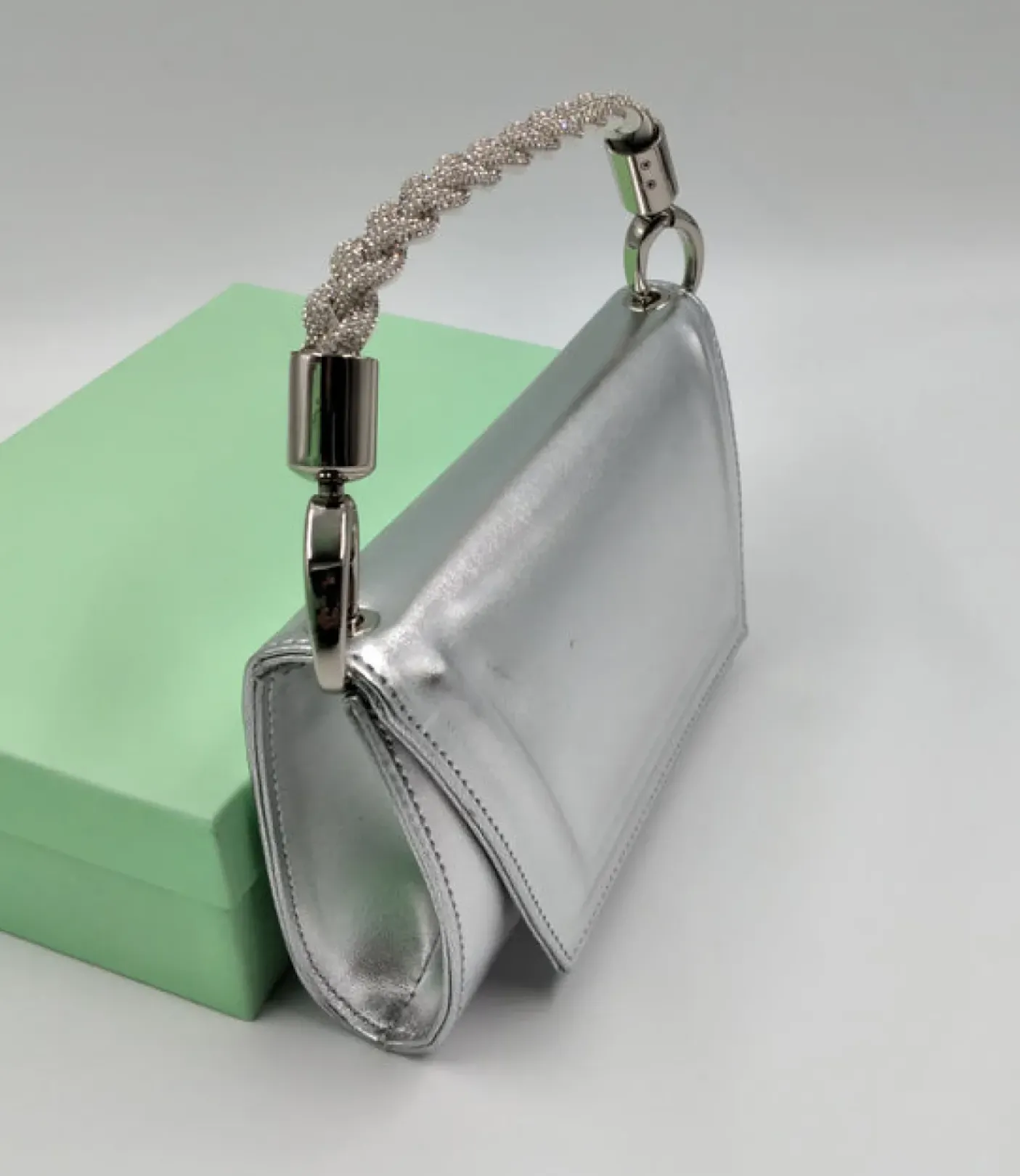 SANDALI ARGENTO TRECCIA STRASS