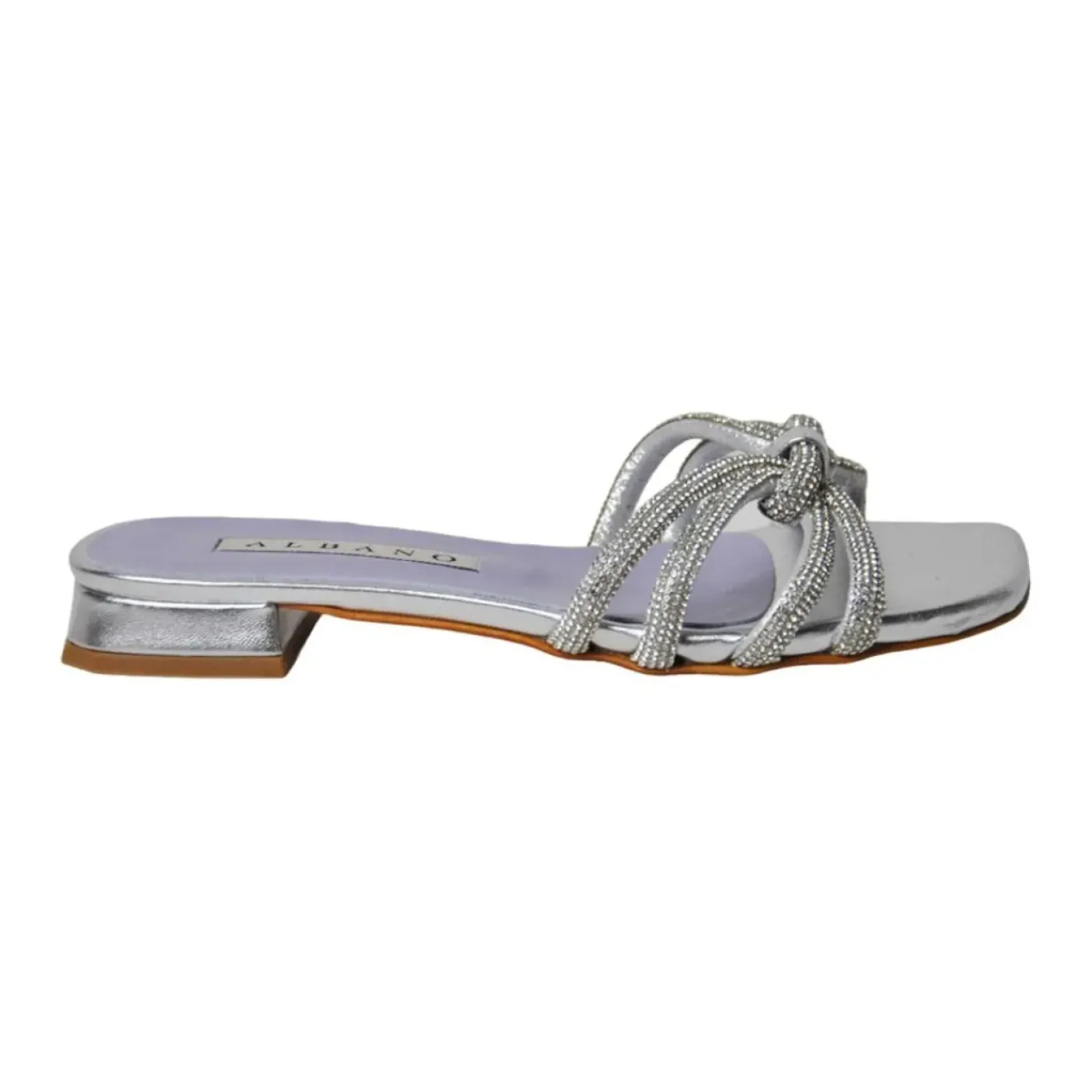 Sandali con decorazione strisce microfibra strass e nodo strass, Soletta in pelle. Tacco 1cm. Suola cuoio.