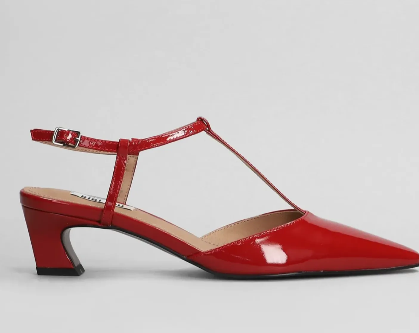 Sandali in pelle vernice rossa. Rivestito internamente in pelle. Chiusura regolabile. Tacco 5cm