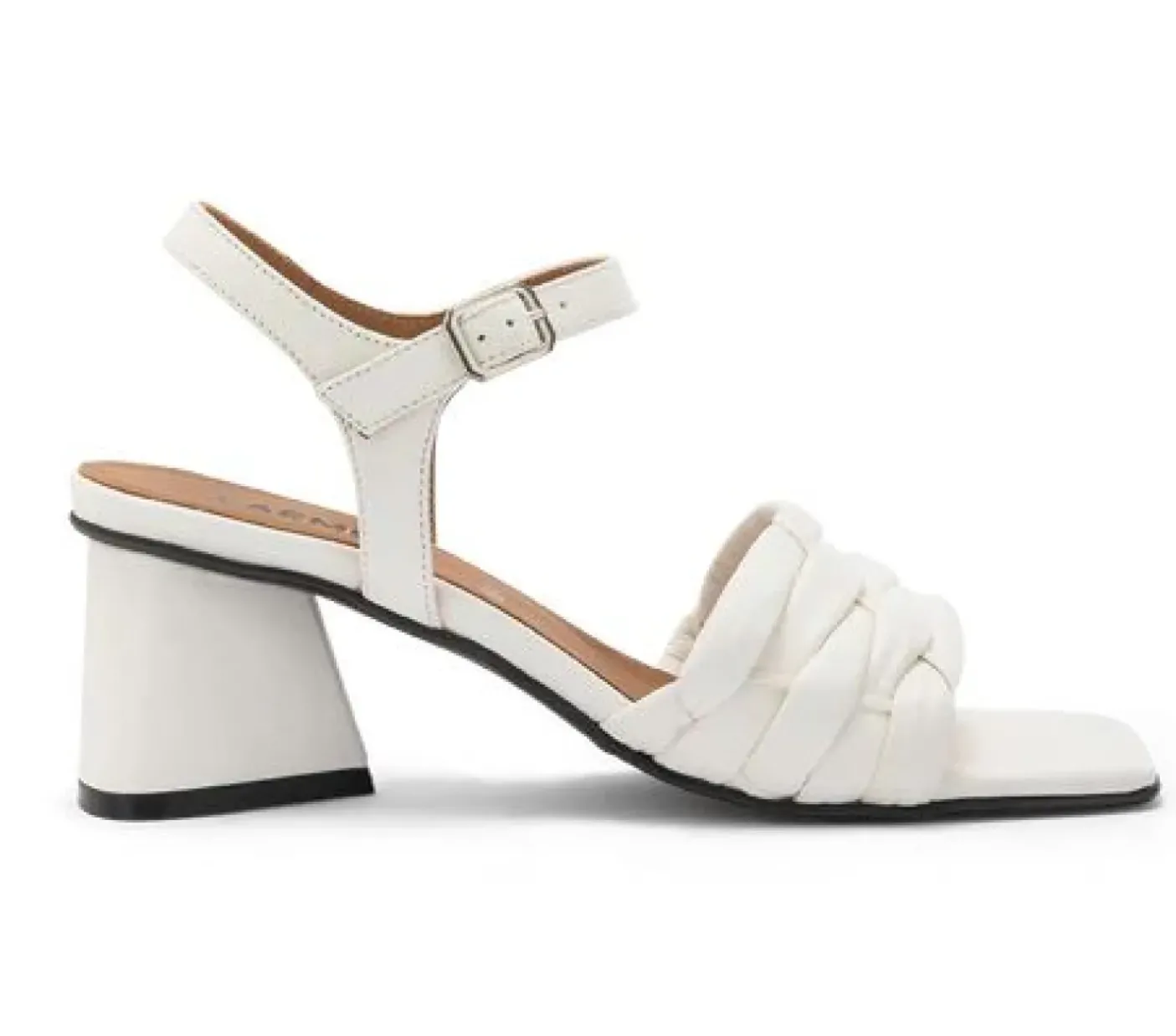 Sandali in vera pelle morbida con fascia intrecciata. chiusura alla caviglia regolabile. Tacco 5,5cm