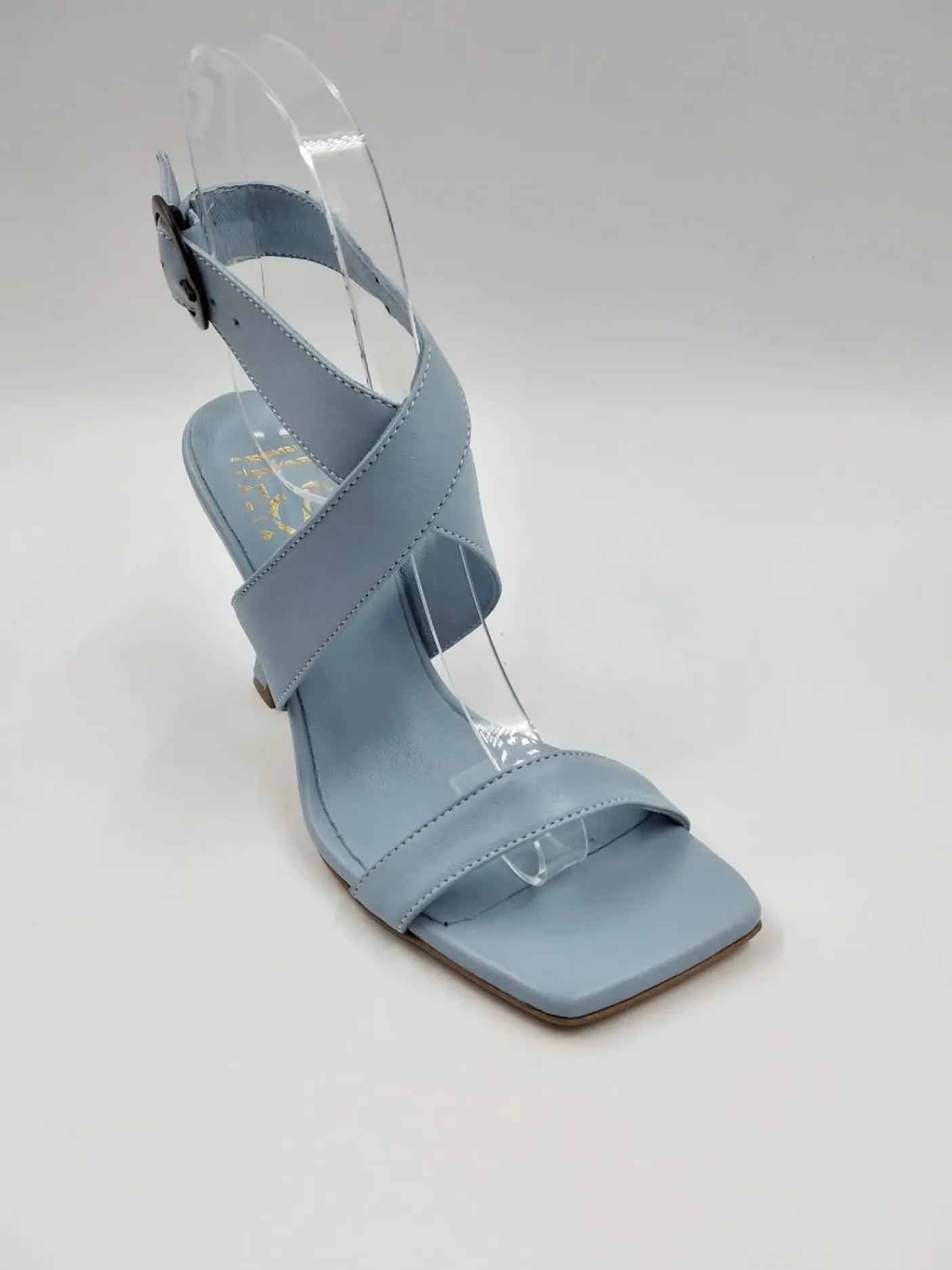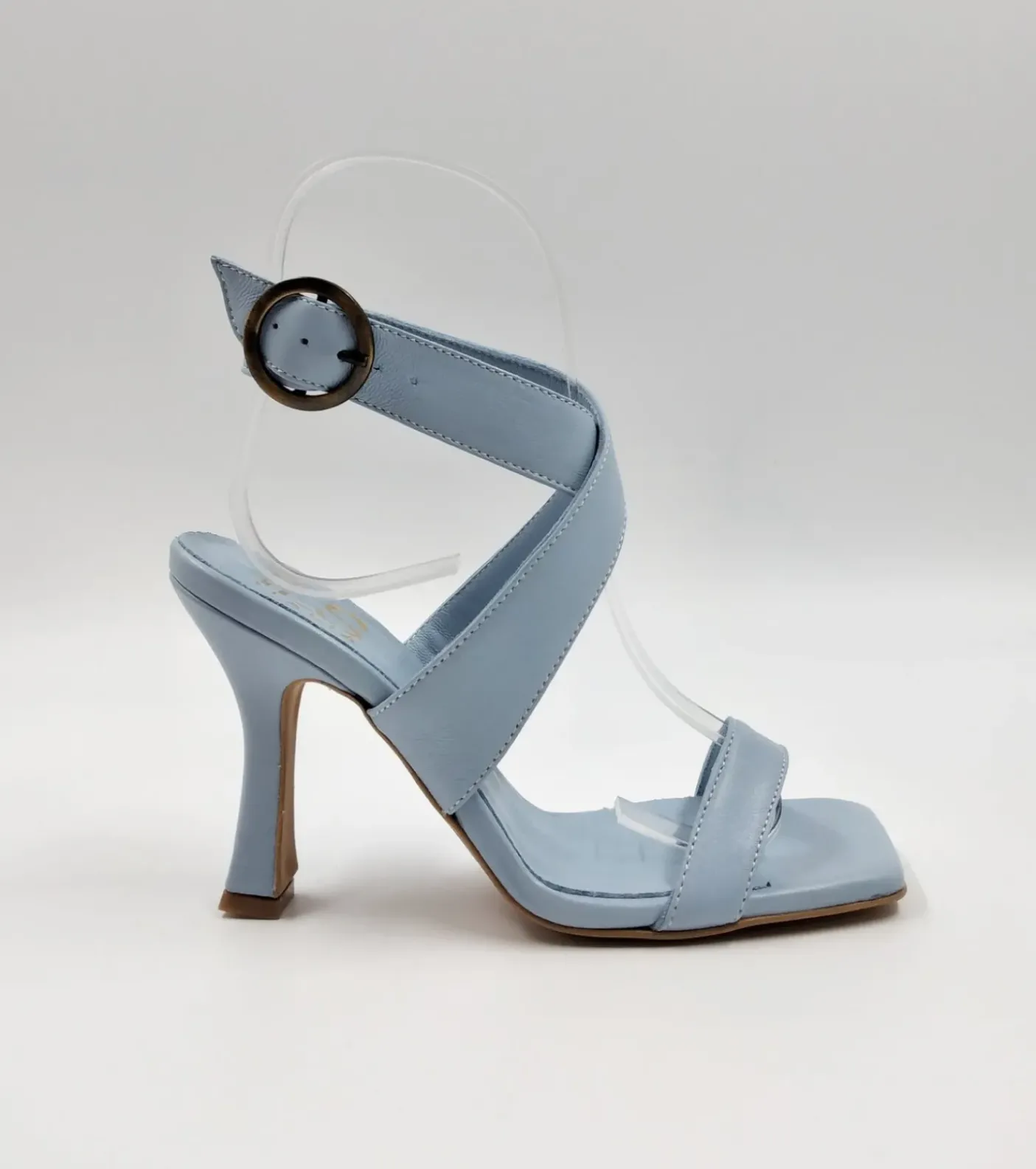 SANDALI FASCE PELLE INCROCIATE CELESTE