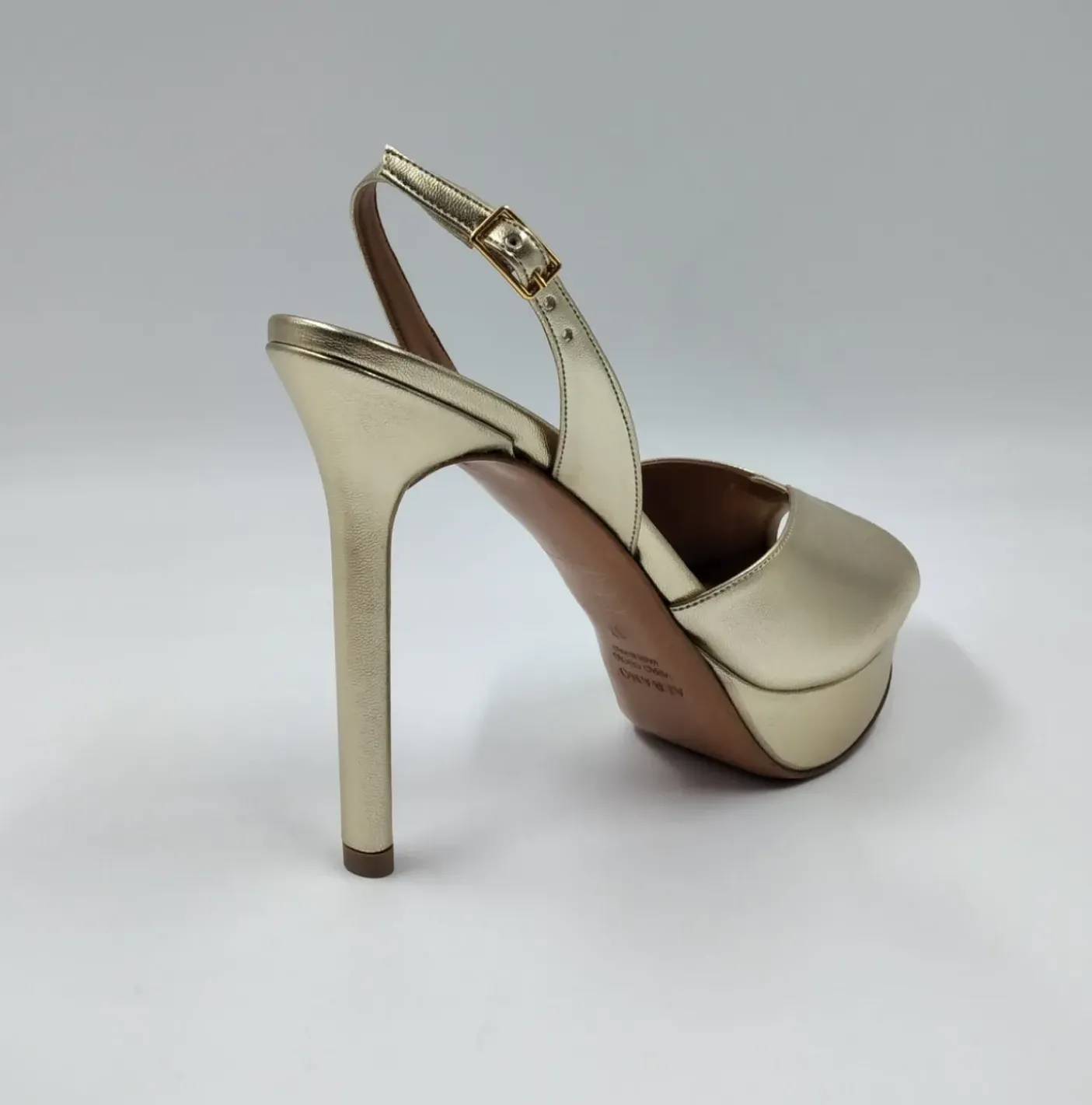 Sandali in pelle rivestito internamente in pelle. Chiusura con fibbia regolabile. Tacco 12cm plateau 2cm. Suola in cuoio.