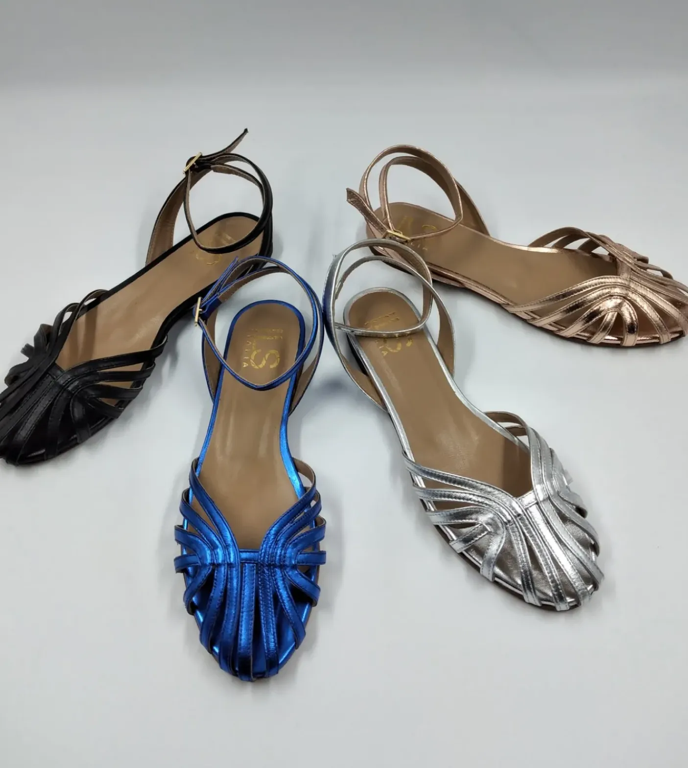 SANDALI FLAT LAMINATO BLU