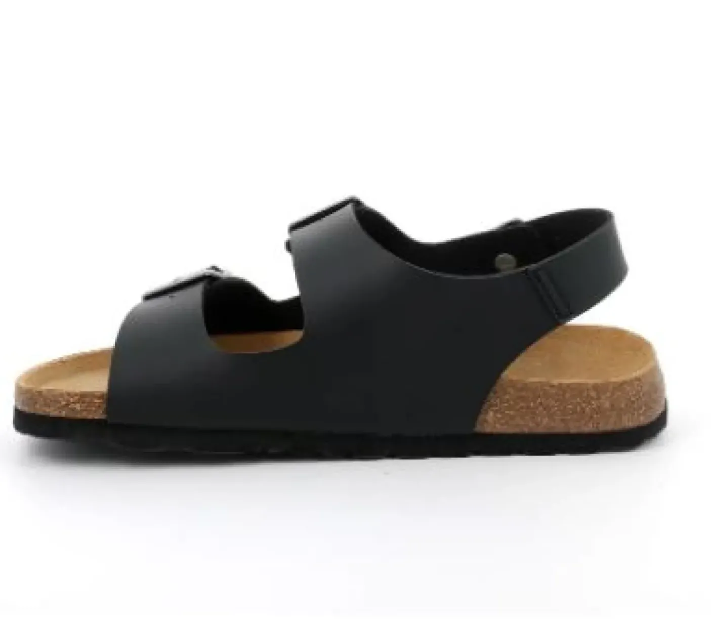 Sandalo in ecopelle realizzata con materiali di riciclo. Plantare anatomico in sughero naturale ricoperto in vera pelle. Fondo gomma. Chiusura con fibbie regolabili.