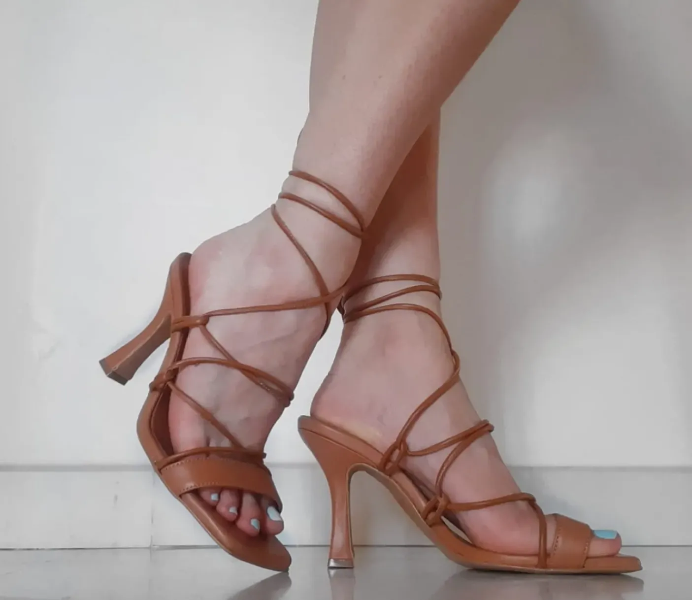 Sandali in vera pelle modello schiava, sottopiede in pelle. Lacci lunghi in pelle. Tacco 10cm
