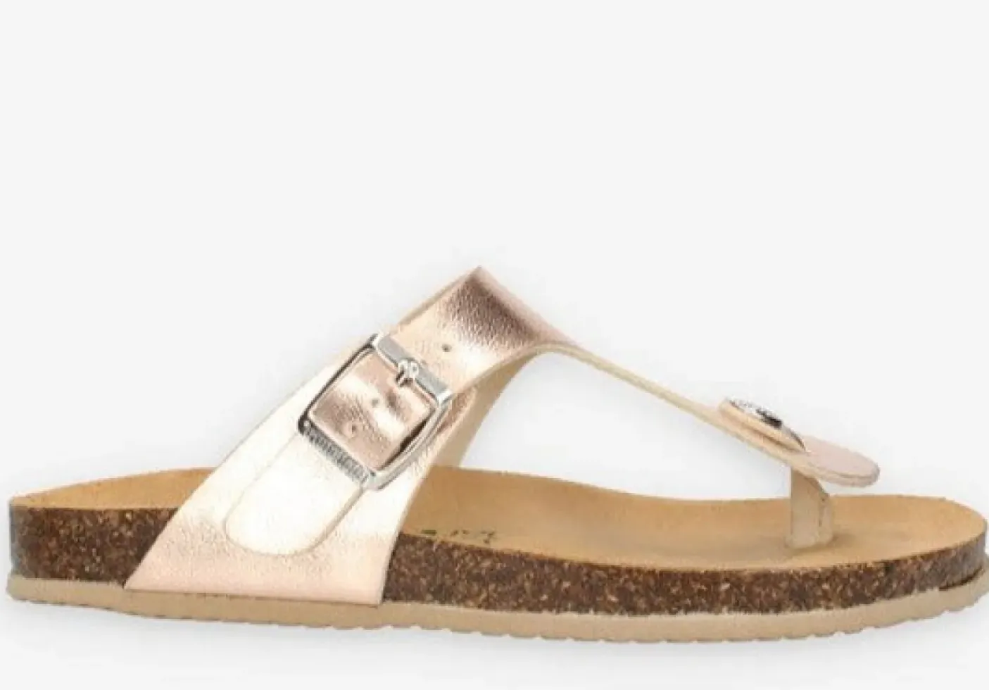 Infradito in pelle nabuk con fibbia regolabile. Sottopiede imbottito in pelle scamosciata, suola in pvc antiscivolo. Accessori Nikel free. Altezza 4cm