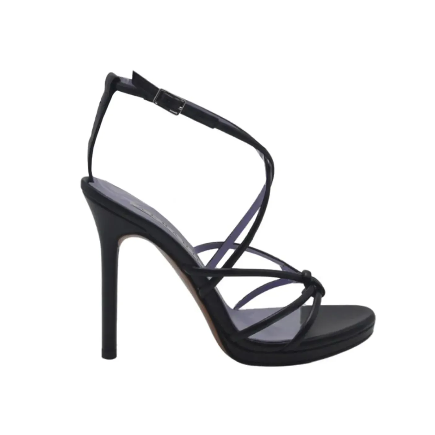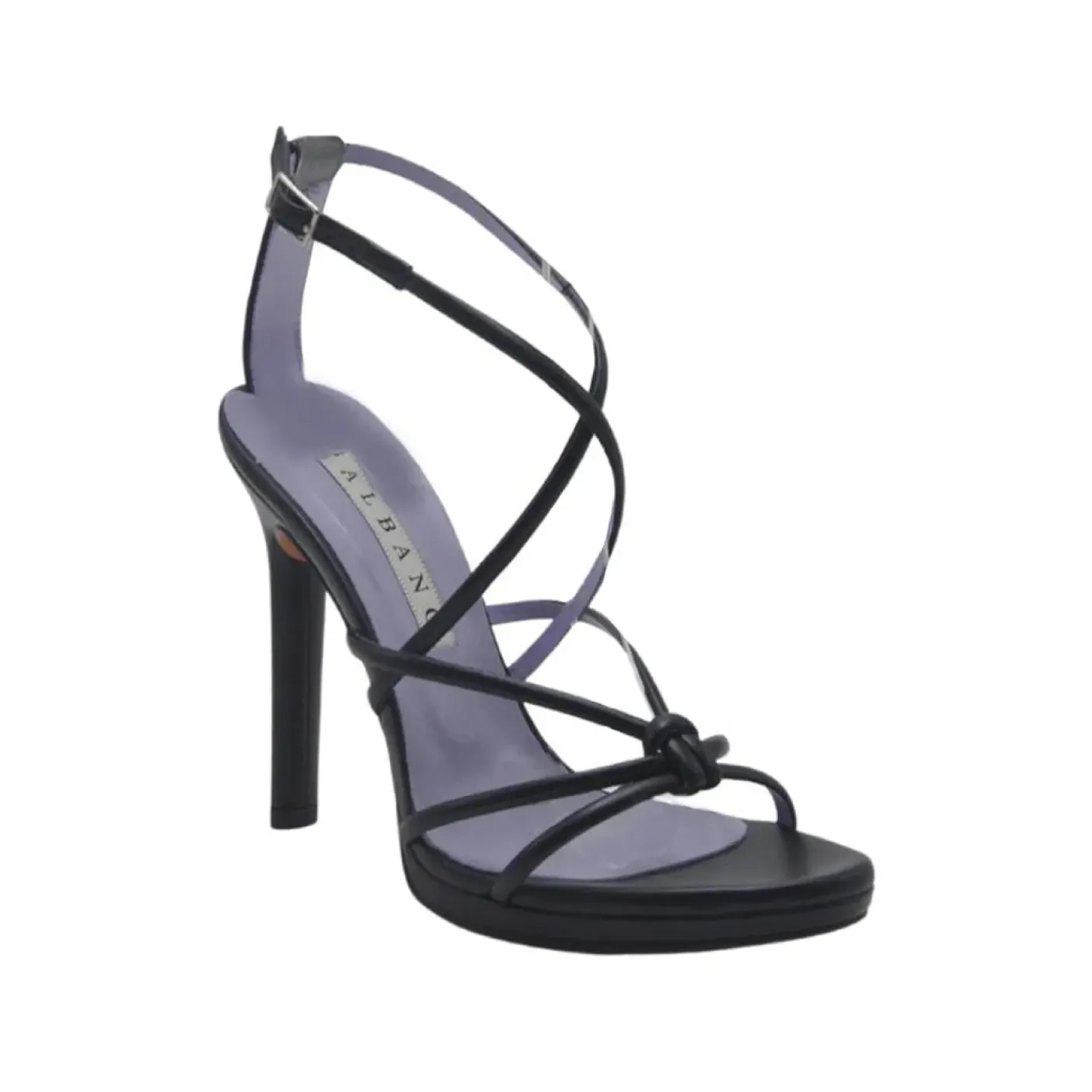 Sandali con lacci intrecci. Rivestito internamente in pelle. Chiusura laterale regolabile. Fortino posteriore sottile. Soletta in pelle. Tacco 11cm. Suola in cuoio.