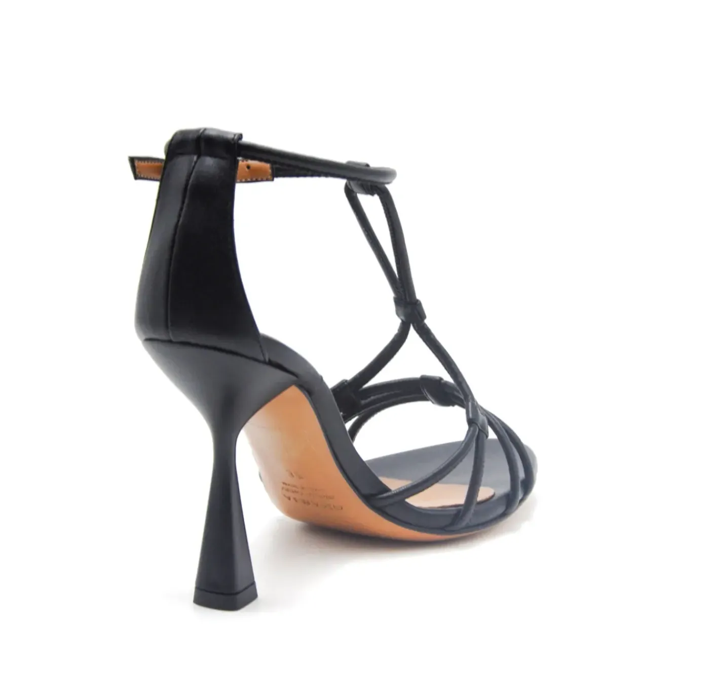 Sandalo in microfibra nero, con cinturino alla caviglia. Rivestito in pelle. Suola in cuoio.