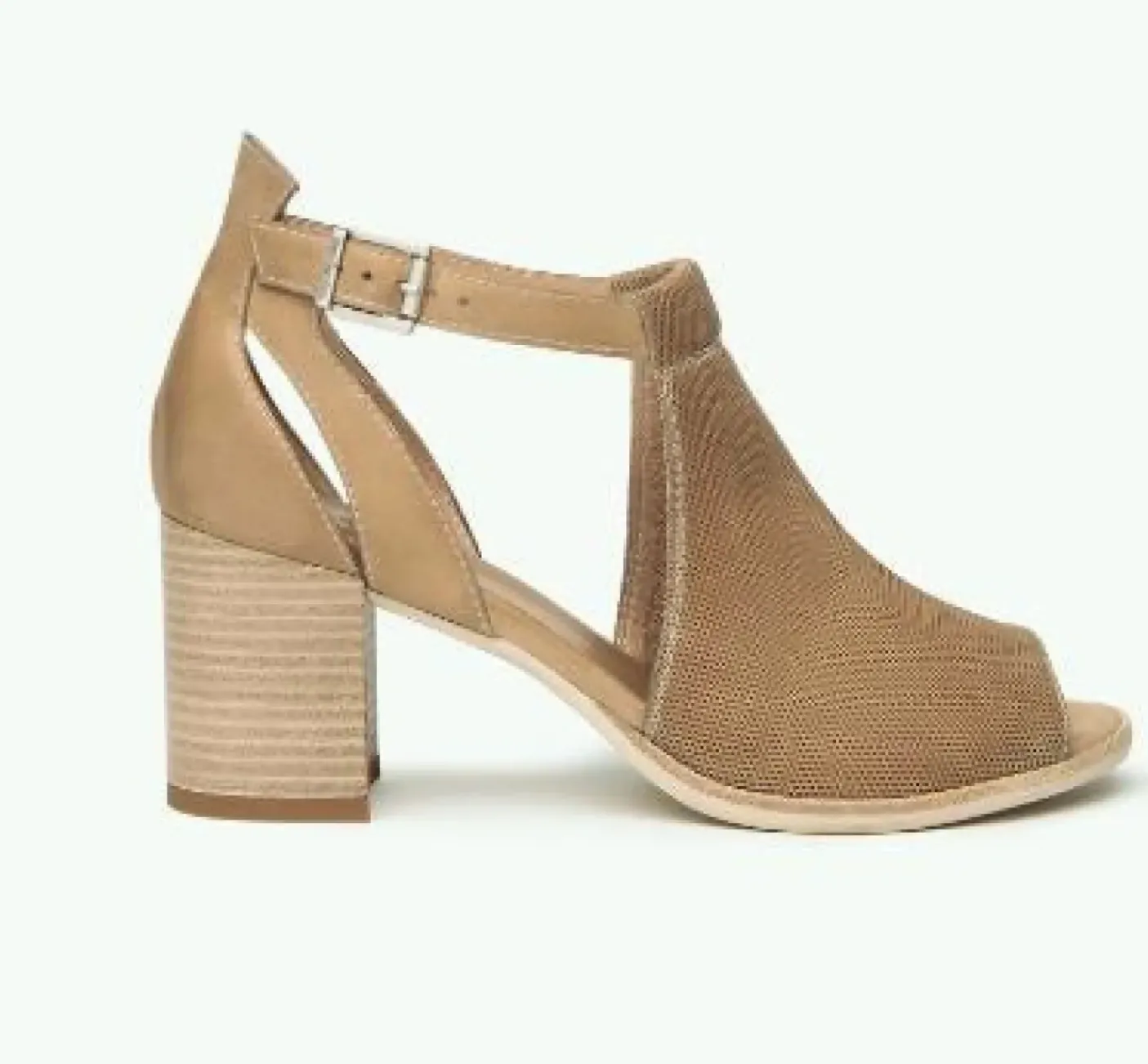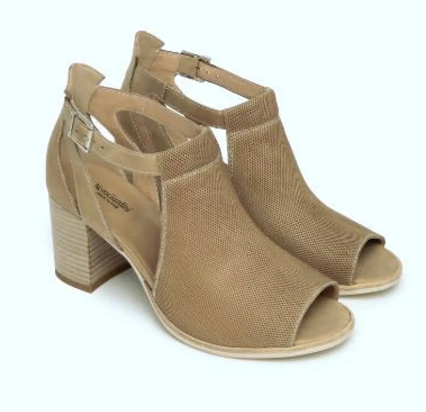 Sandali in pelle, rivestiti internamente in pelle. Chiusura con fibbia regolabile. Soletta in pelle. Tacco a blocco 7 cm.