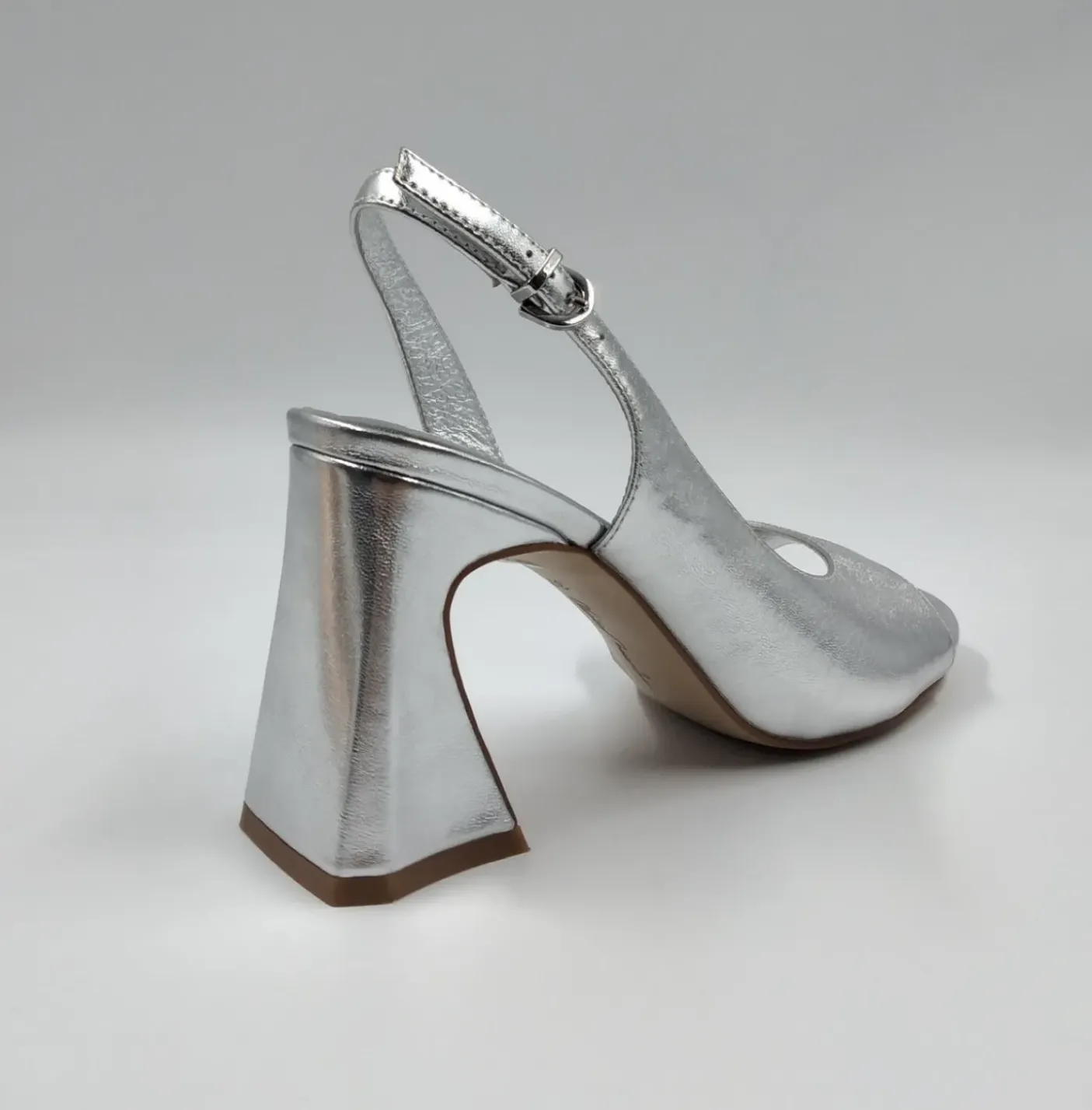 Sandali in pelle con soletta e fodera in vera pelle. Chiusura regolabile laterale. Punta squadrata aperta. Suola in cuoio. Tacco squadrato 10cm