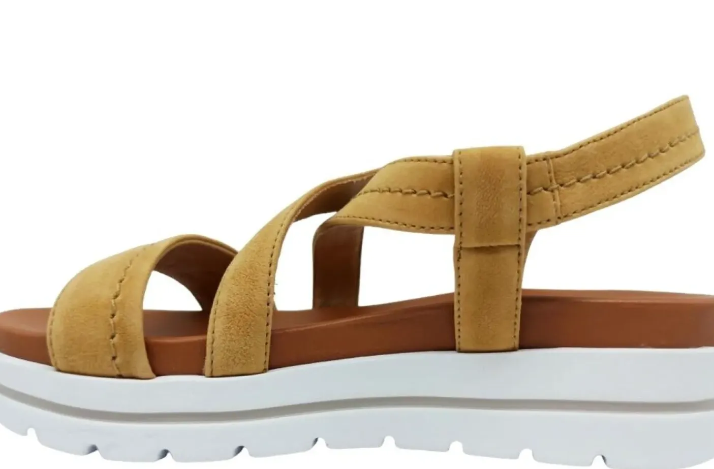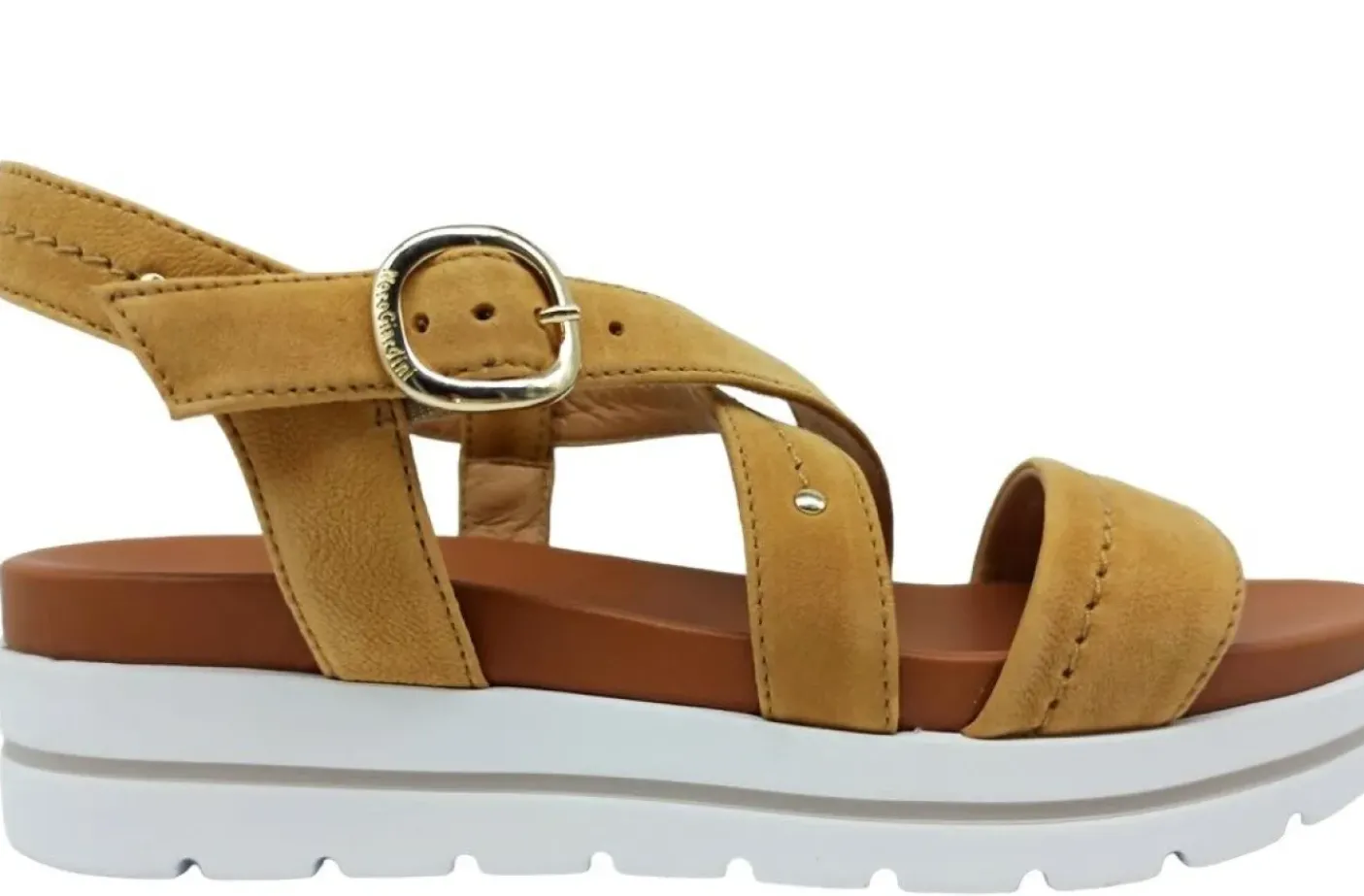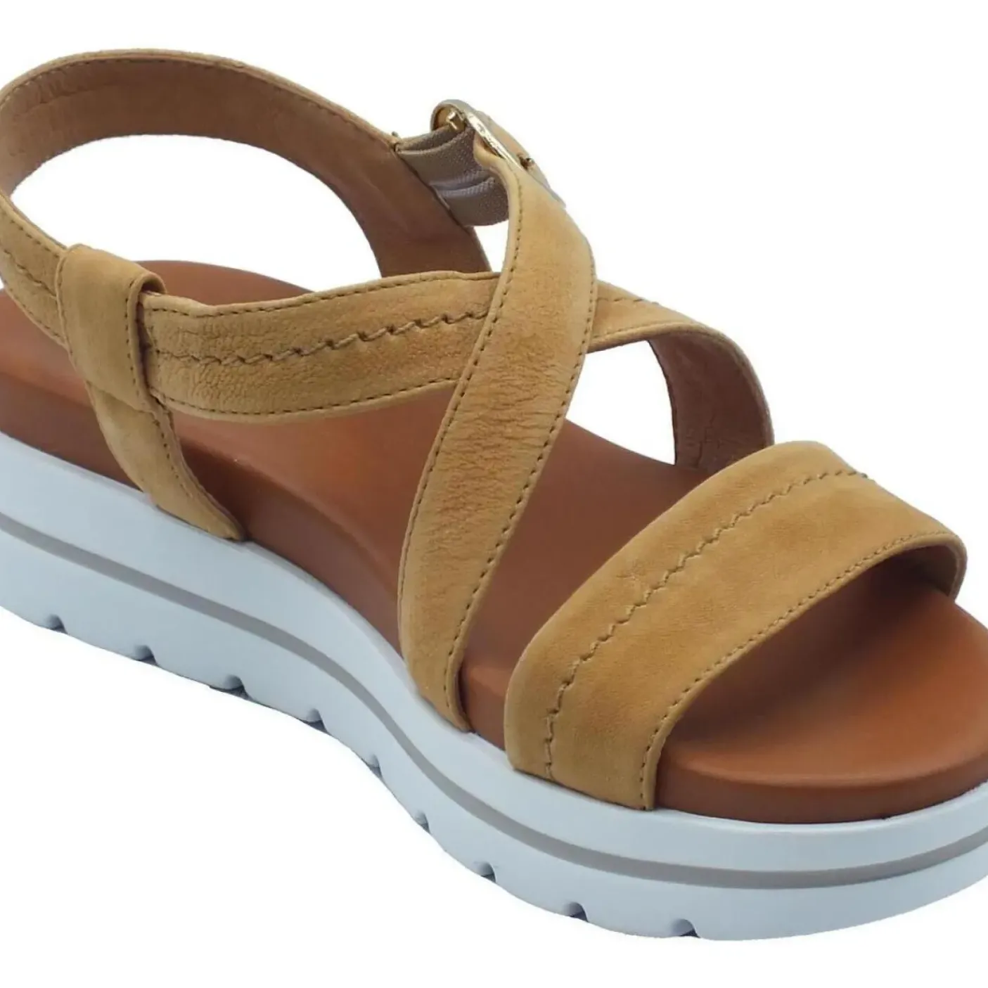 Sandali in pelle nabuk con fasce. Rivestito in pelle . Sottopiede in pelle. Chiusura regolabile. Fondo gomma 4,5cm