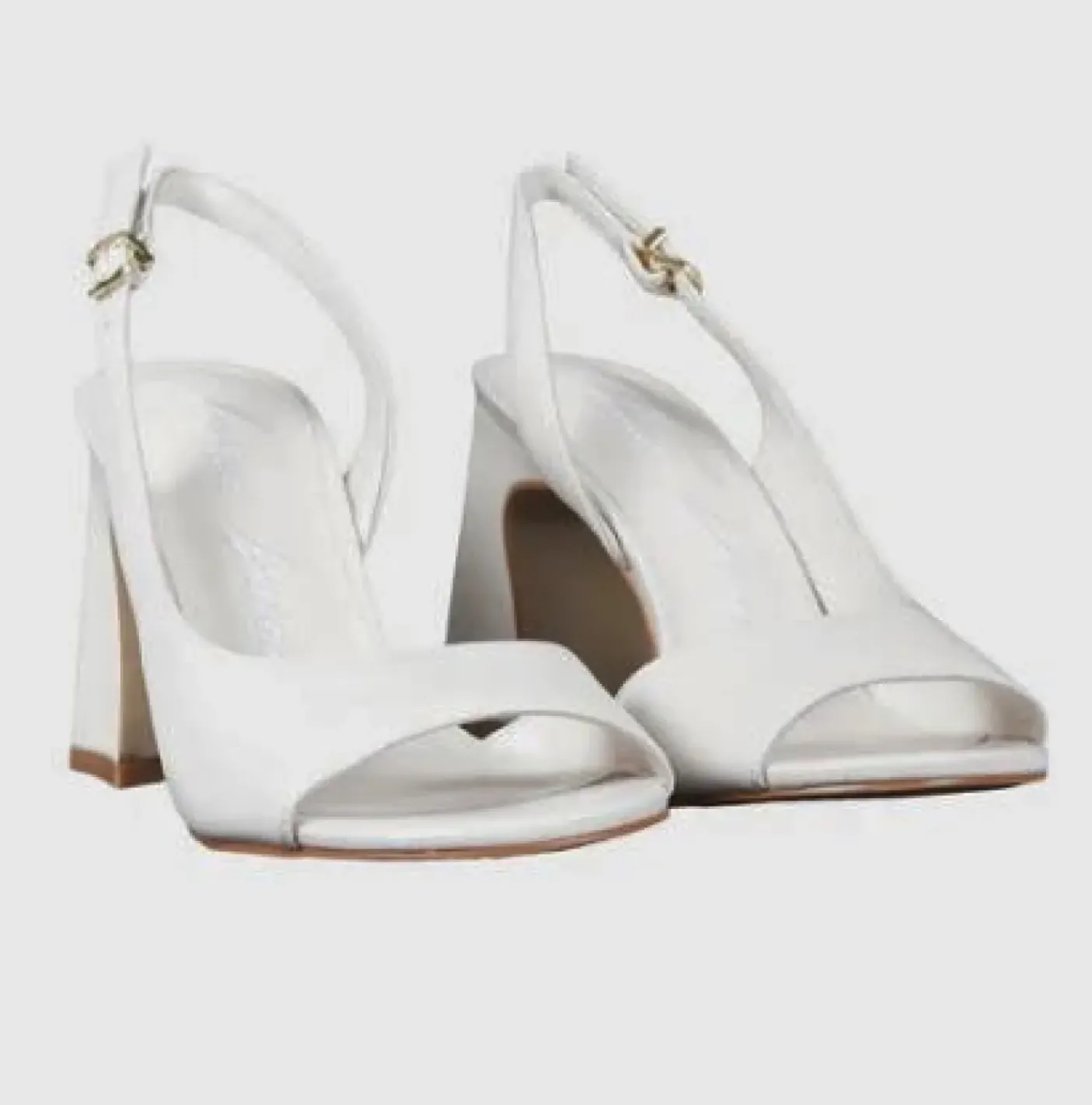 Sandali in pelle con soletta e fodera in vera pelle. Chiusura regolabile laterale. Punta squadrata aperta. Suola in cuoio. Tacco squadrato 9cm