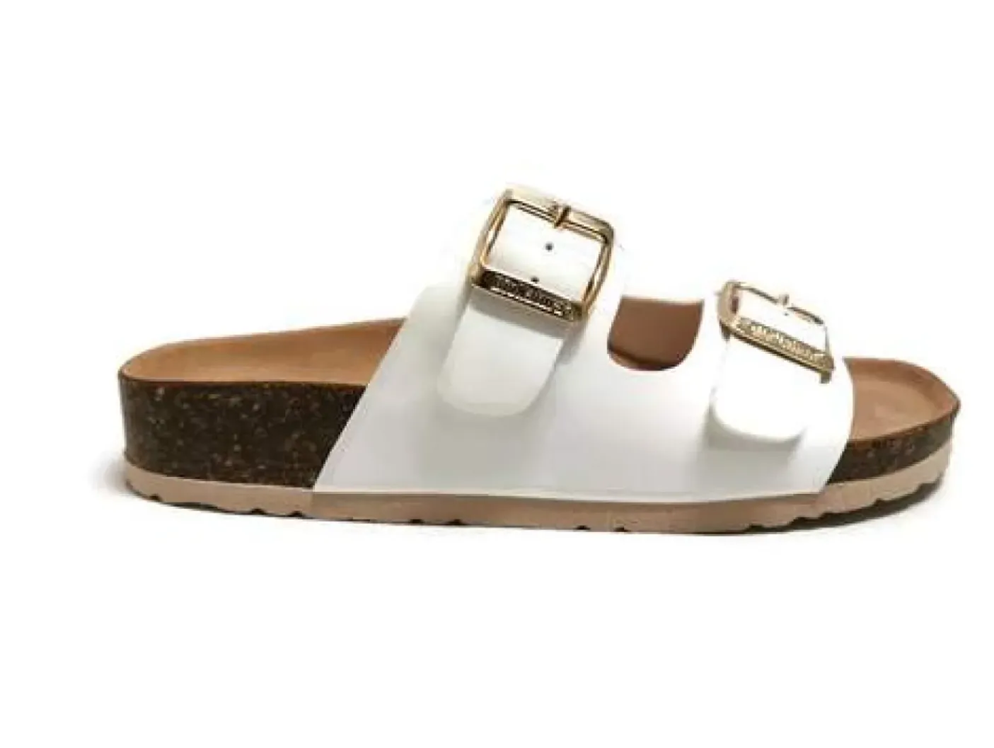Sandalo, tomaia in bioflor sintetico con fibbie regolabili, sottopiede imbottito in pelle scamosciata. Suola in micro e accessori Nikel free. Altezza 3cm