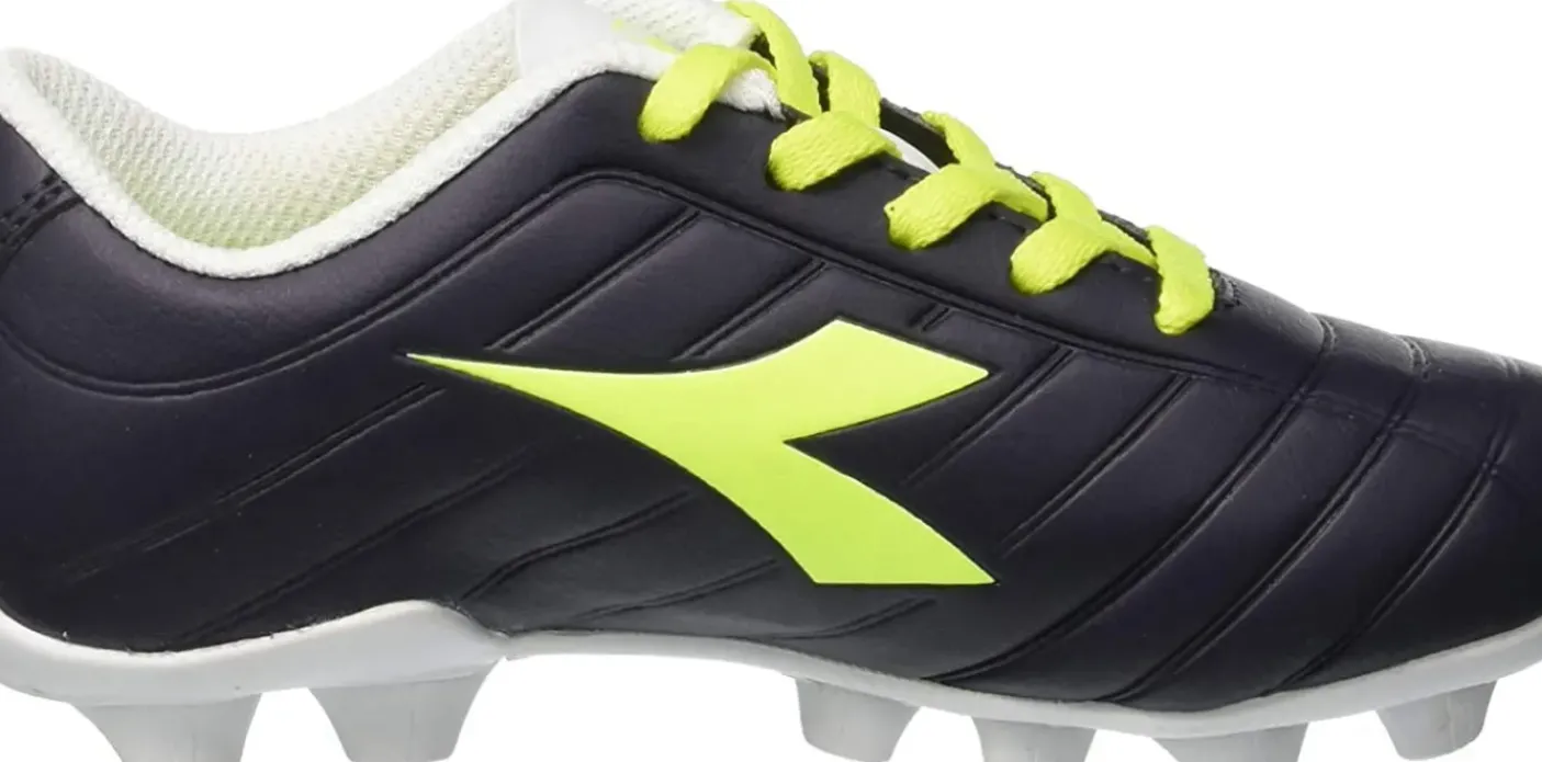 Scarpa calcio bambino Unisex. Tomaia suprell water resistant, fodera antistretch e sottopiede con punti di flessione nell’area dell’avampiede, garantiscono flessibilità e controllo. Gomma di durezza differenziata con 14 tacchetti fissi ovali. Cucita anteriromente alla tomaia. Modello adatto per terreni duri.