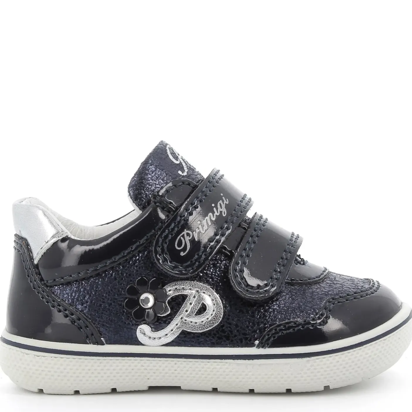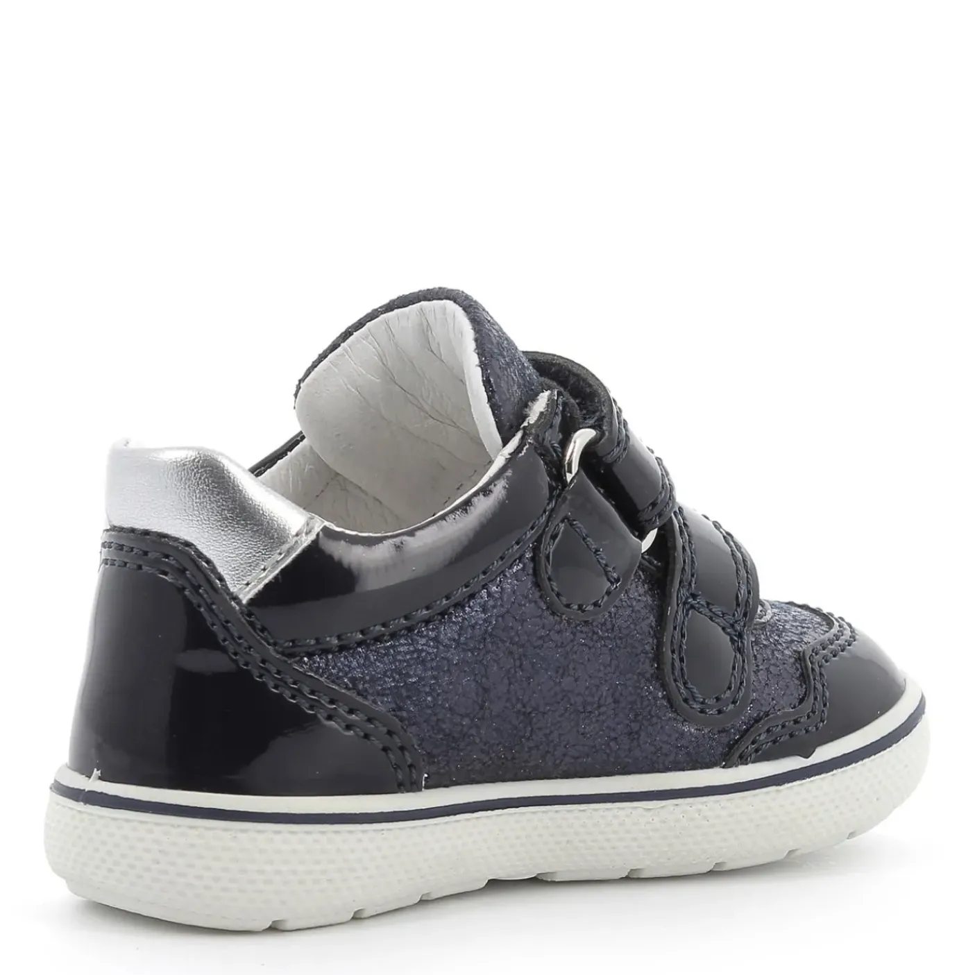 Scarpe lucide Primi Passi in vernice ed ecopelle laminata. Rivestita internamente in pelle Cromo Free, suoletta estraibile. Chiusura doppio strappo