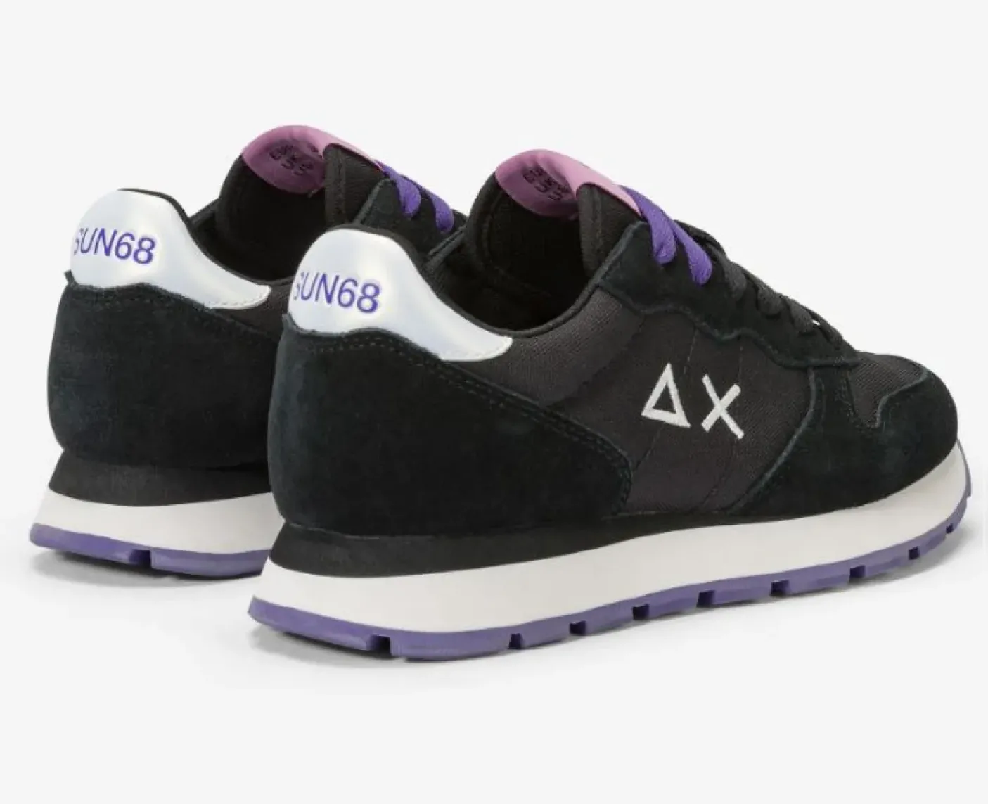 Sneakers in camoscio e tessuto. Logo bianco sul lato. Chiusura con lacci, fondo in gomma bicolor. Spoiler bianco. Lacci cotone nero e viola.