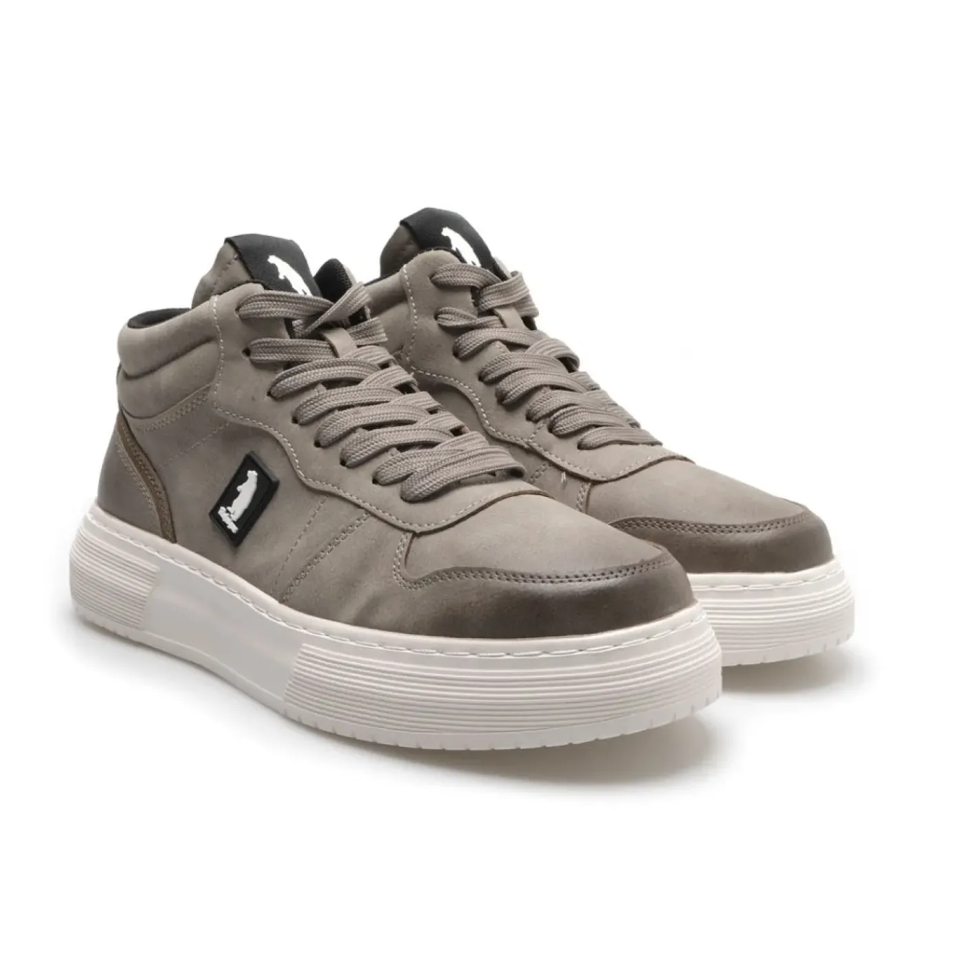 Sneakers collo alto in ecopelle. Rivestita internamente in tessuto. Chiusura con lacci. Fondo gomma. Logo laterale contrasto.