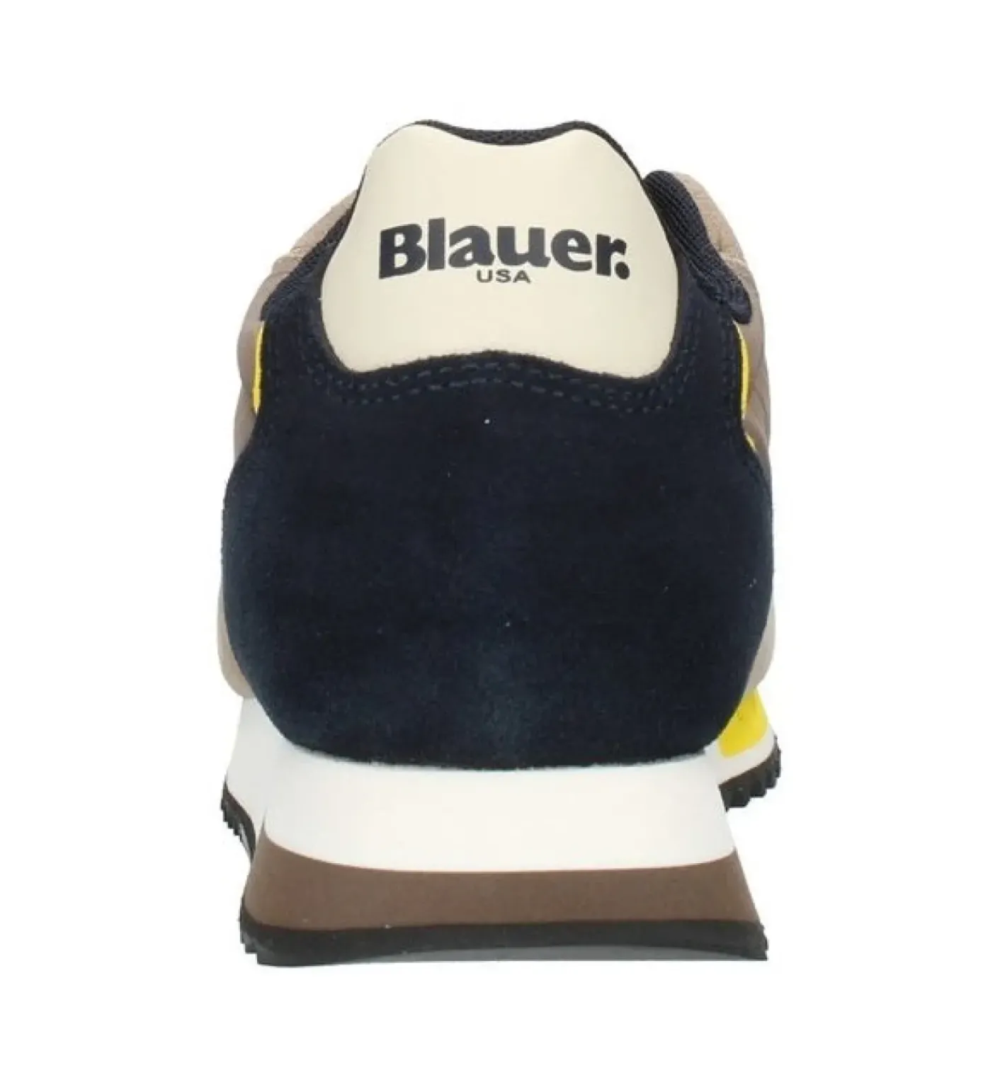 Sneakers in pelle, camoscio e tessuto, camoscio sul tallone a contrasto blu. Rivestita internamente in tessuto, chiusura con lacci e fondo in gomma.