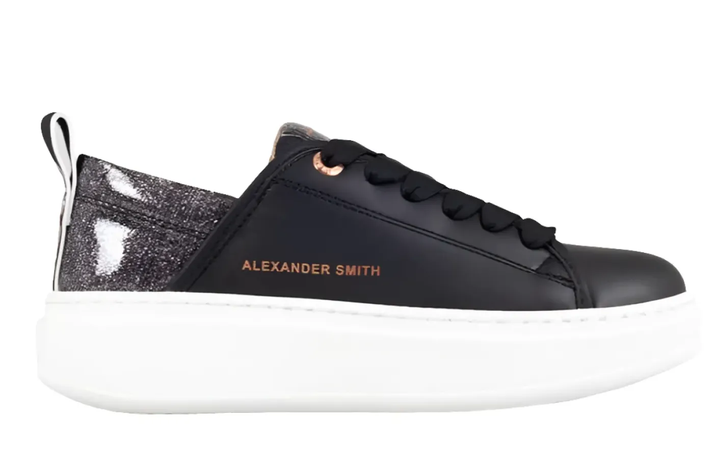 Sneakers in eco bio con dettagli rame. dettagli posteriori tessuto lux. Chiusura con lacci. Placchetta sui lacci logata removibile. Fondo gomma 4,5cm