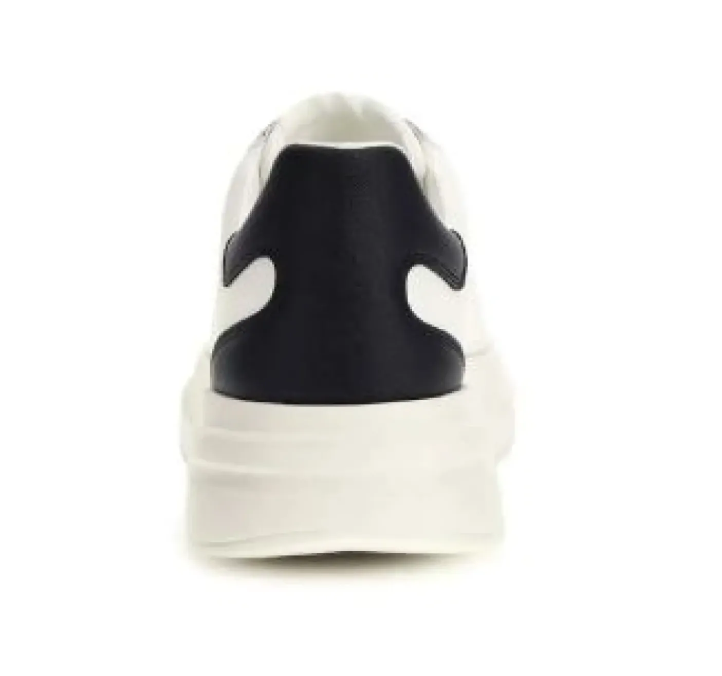 Sneakers in pelle con inserti in ecopelle. Dettaglio posteriore in colore blu scuro. Rivestita internamente in tessuto. Soletta estraibile. Chiusura con lacci. Fondo gomma 4,5cm.