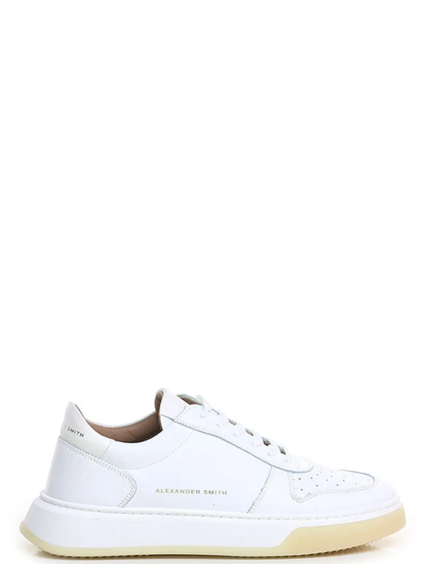 Sneakers in vera pelle. Rivestita internamente in pelle. Fondo gomma 4cm. Chiusura con lacci. Logo laterale a contrasto.