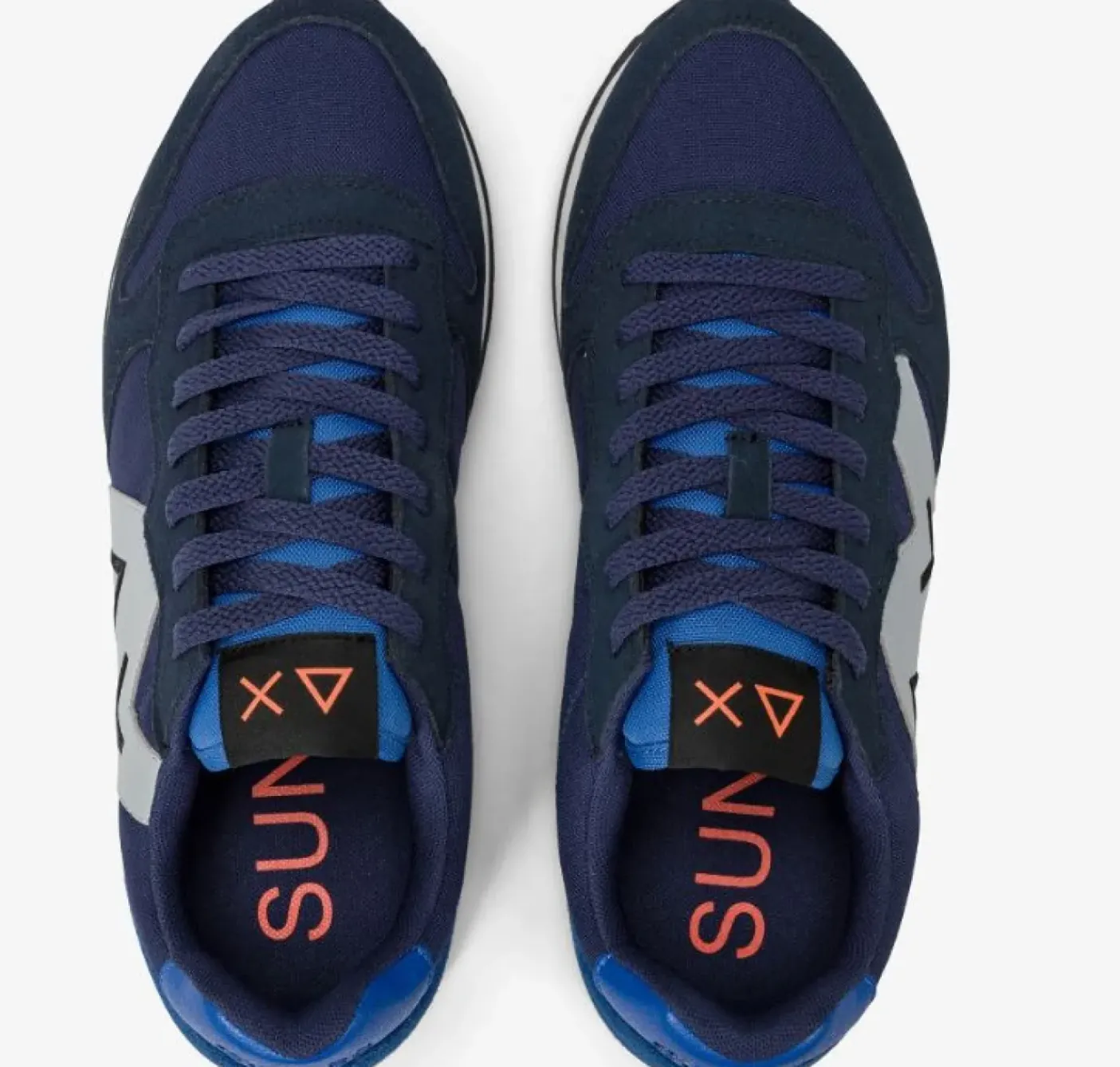 Sneaker in camoscio suede e tessuto nylon. Fondo gomma e chiusura con lacci, spoiler colore celeste. Rivestita internamente in tessuto. Logo a contrasto.