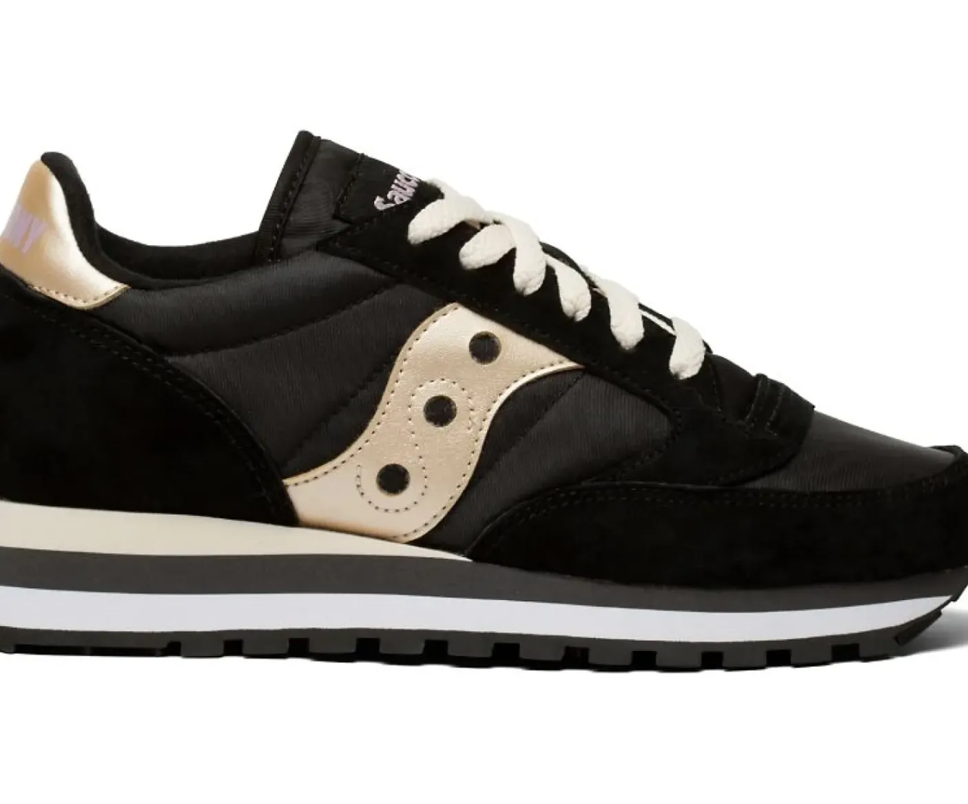 Sneakers Edizione Limitata, realizzate in morbida pelle scamosciata con inserti in nylon. L’ intersuola in Eva bicolore più alta rispetto a quella dell’iconica Jazz O’, fodera in tessuto e soletta rimovibile. Leggera e confortevole. Fascia oro.