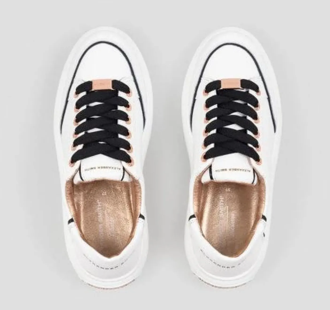 Sneakers in vera pelle con dettagli rame. Chiusura con lacci. Placchetta sui lacci logata removibile. Fondo gomma 5cm