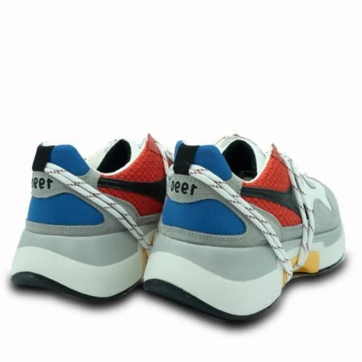 Sneakers HERITAGE in camoscio e tessuto, inserti in pelle nera. rivestita internamente in tessuto. Fondo in gomma. Chiusura particolare con lacci.