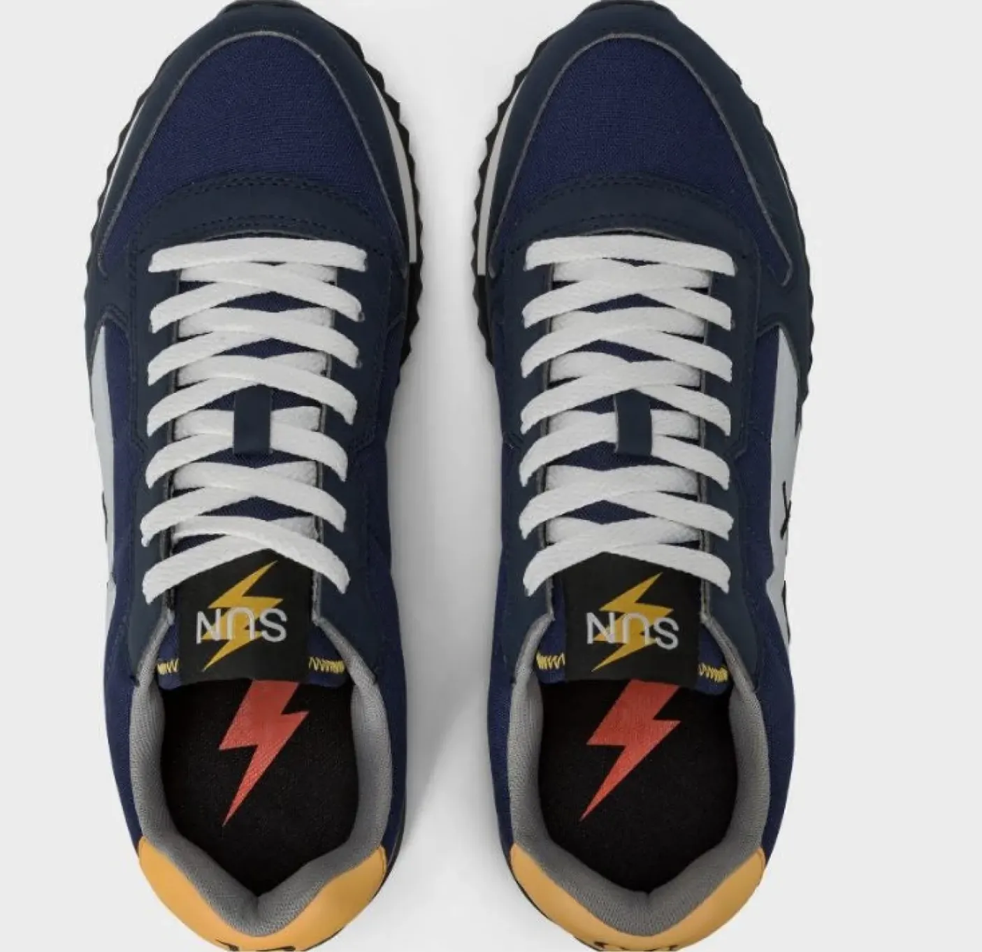 Sneaker in camoscio suede e tessuto nylon. Fondo gomma e chiusura con lacci, spoiler colore giallo. Rivestita internamente in tessuto. Logo a contrasto.