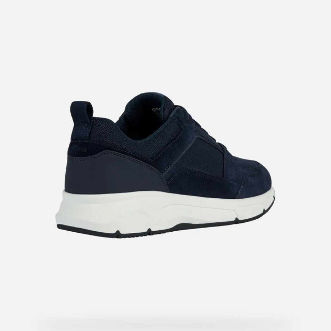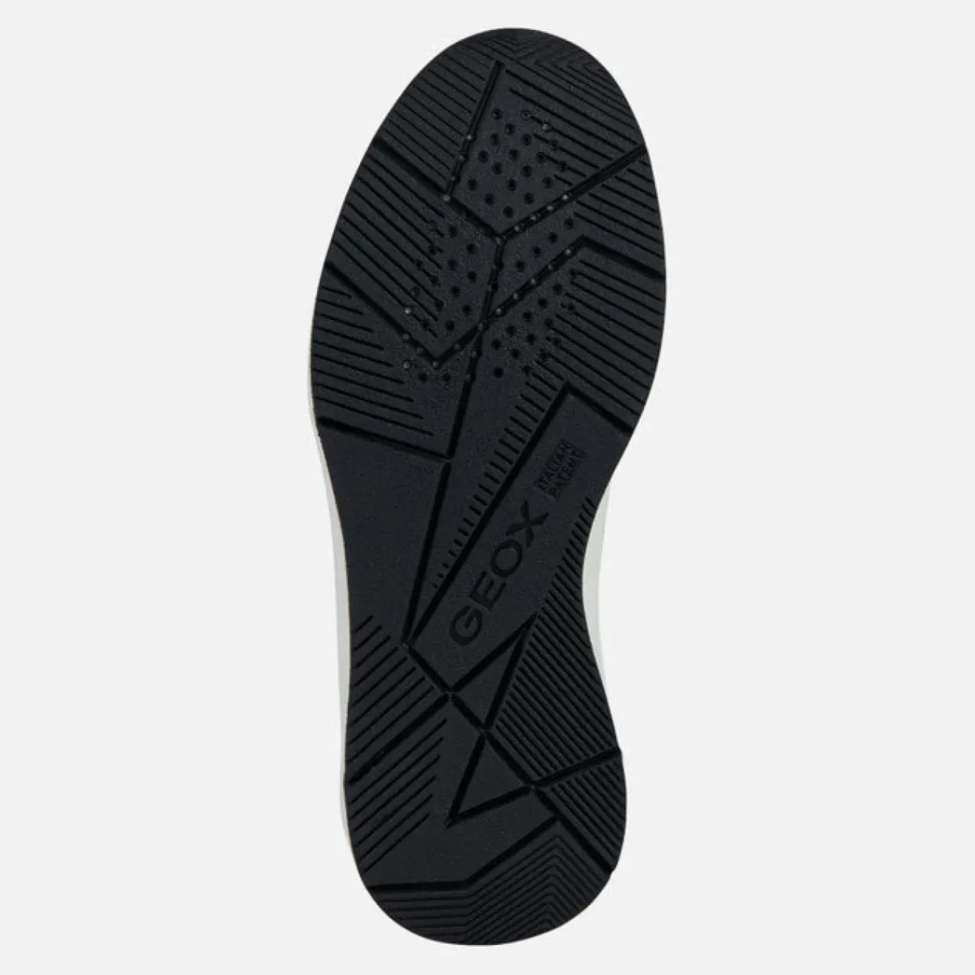 Sneakers in scamosciato e mesh grigio e tessuto. Traspirabilità della suola e benessere del piede sono assicurati dai sistemi brevettati Geox. Chiusura con lacci. Soletta estraibile in pelle. Fondo gomma.