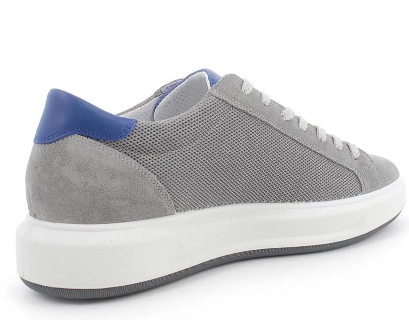 Sneakers scamosciata rivestita internamente in pelle. Fondo in gomma e chiusura con lacci.