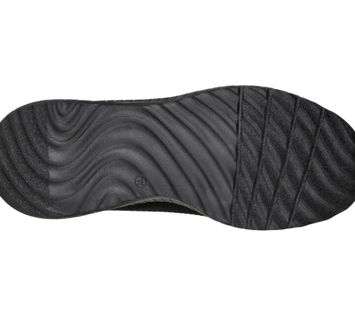 Sneakers con tomaia in maglia mesh tecnica con una soletta ammortizzata Memory Foam. Total black. Fondo in gomma e chiusura con lacci.