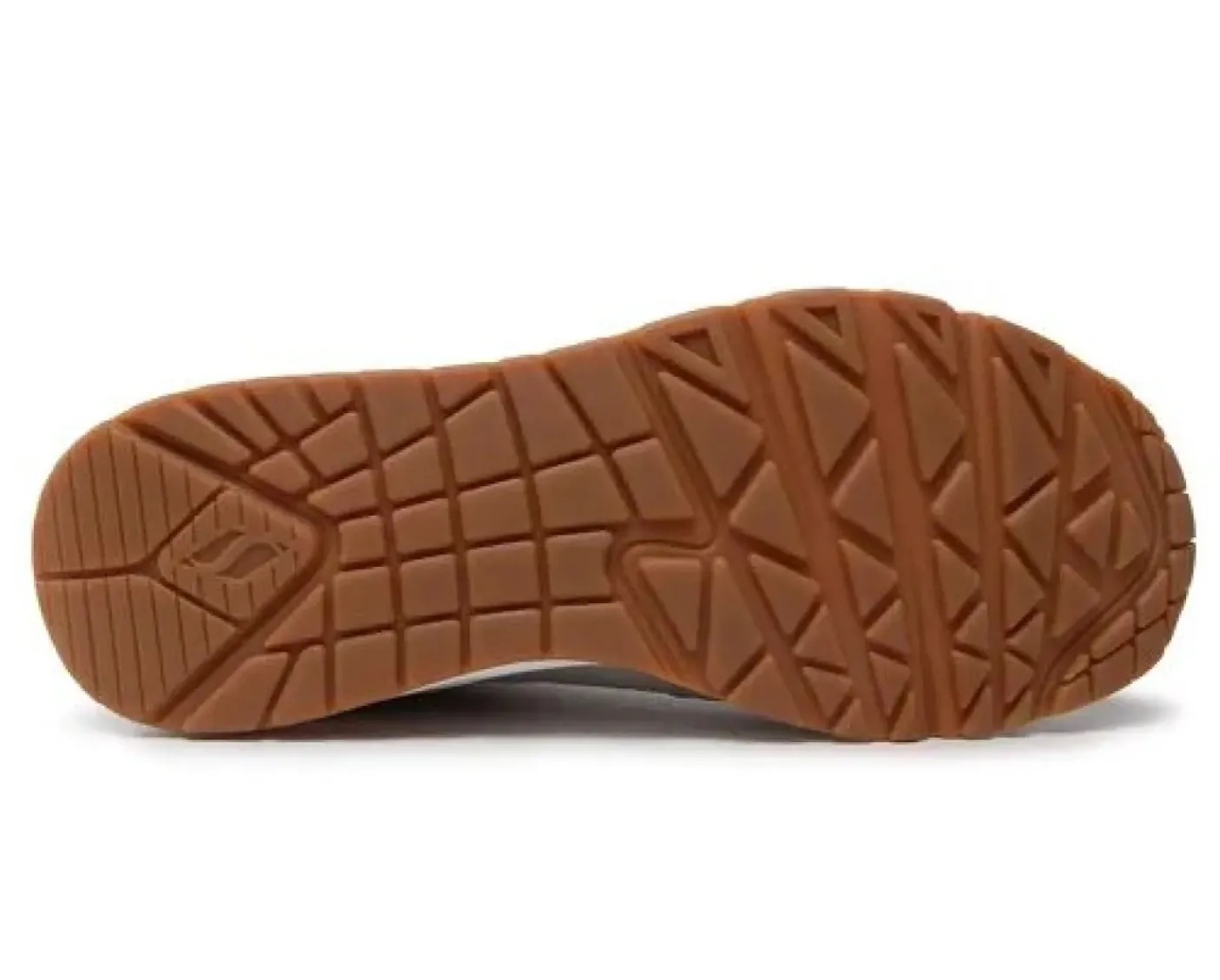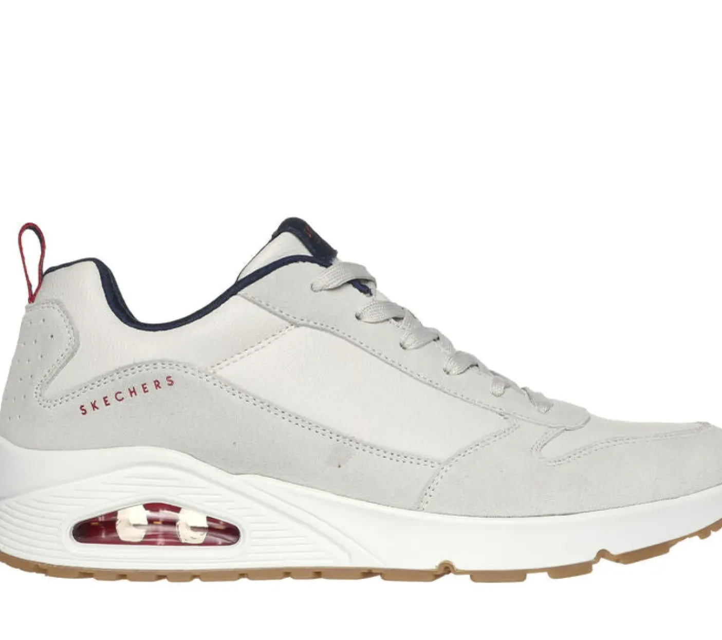 Sneakers in pelle scamosciata ed ecopelle. Rivestita in tessuto traspirante. Soletta Air Cooled Memory Foam® e intersuola ammortizzata ad aria con tecnologia visibile Skech-Air®. Chiusura con lacci.