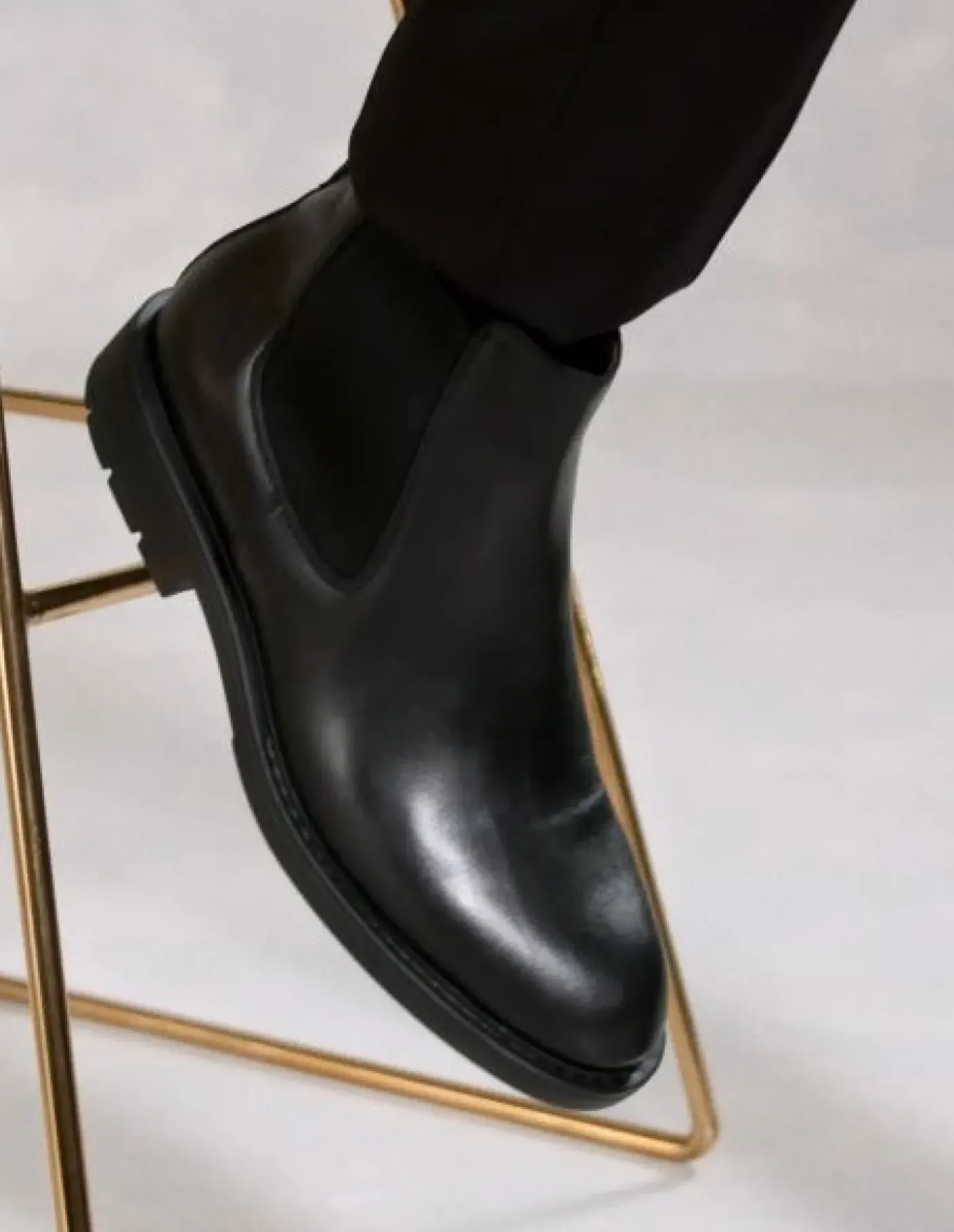 Stivaletti modello beatles in pelle. Rivestito internamente in pelle. Elastici laterali. Fondo gomma.
