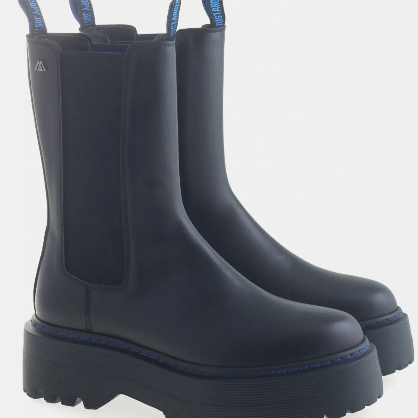 Stivaletto modello beatles in pelle con elastico laterale. Fondo in gomma. Gambale alto 21cm.