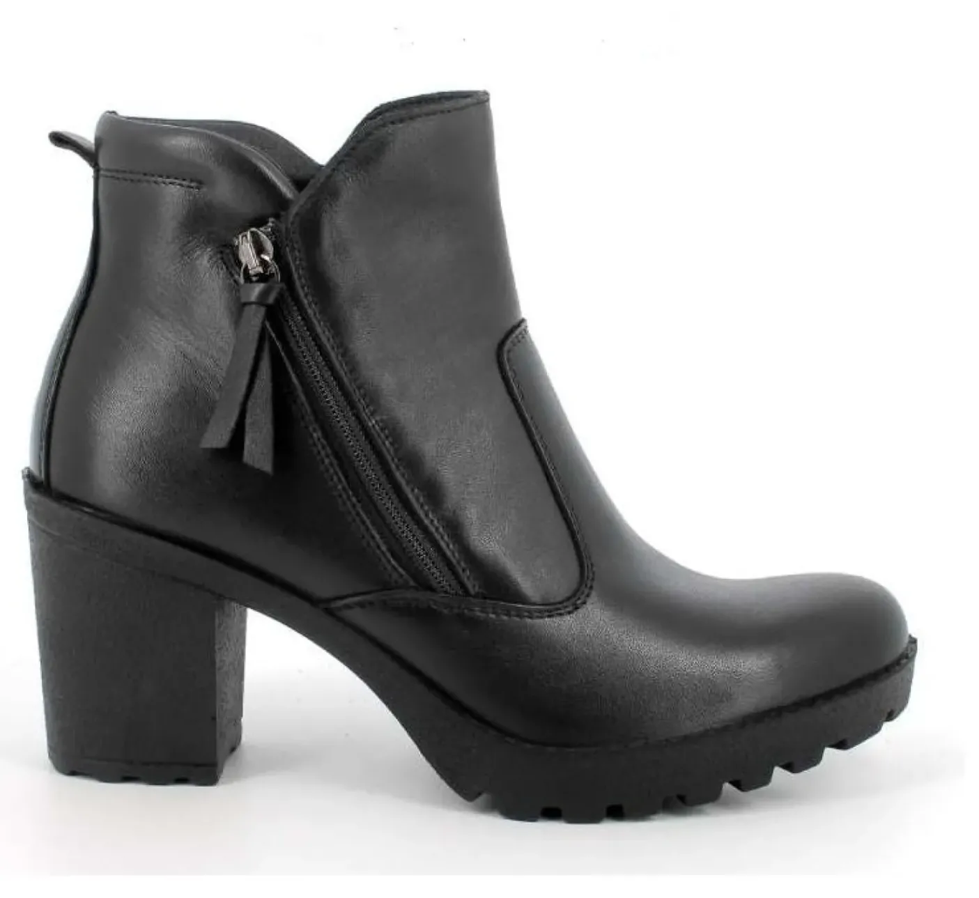 Stivaletti in pelle morbida rivestiti internamente in caldo tessuto e pelle. Zip laterale. Soletta estraibile. Fondo gomma 8cm
