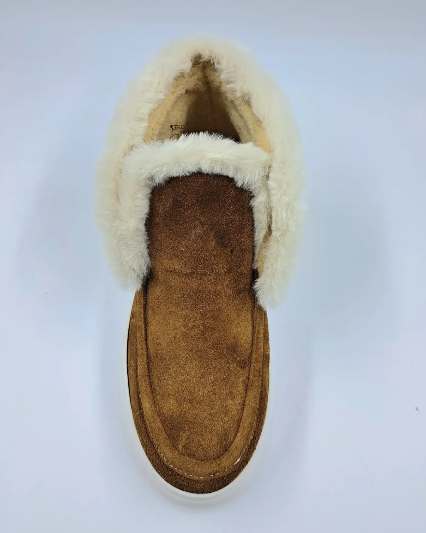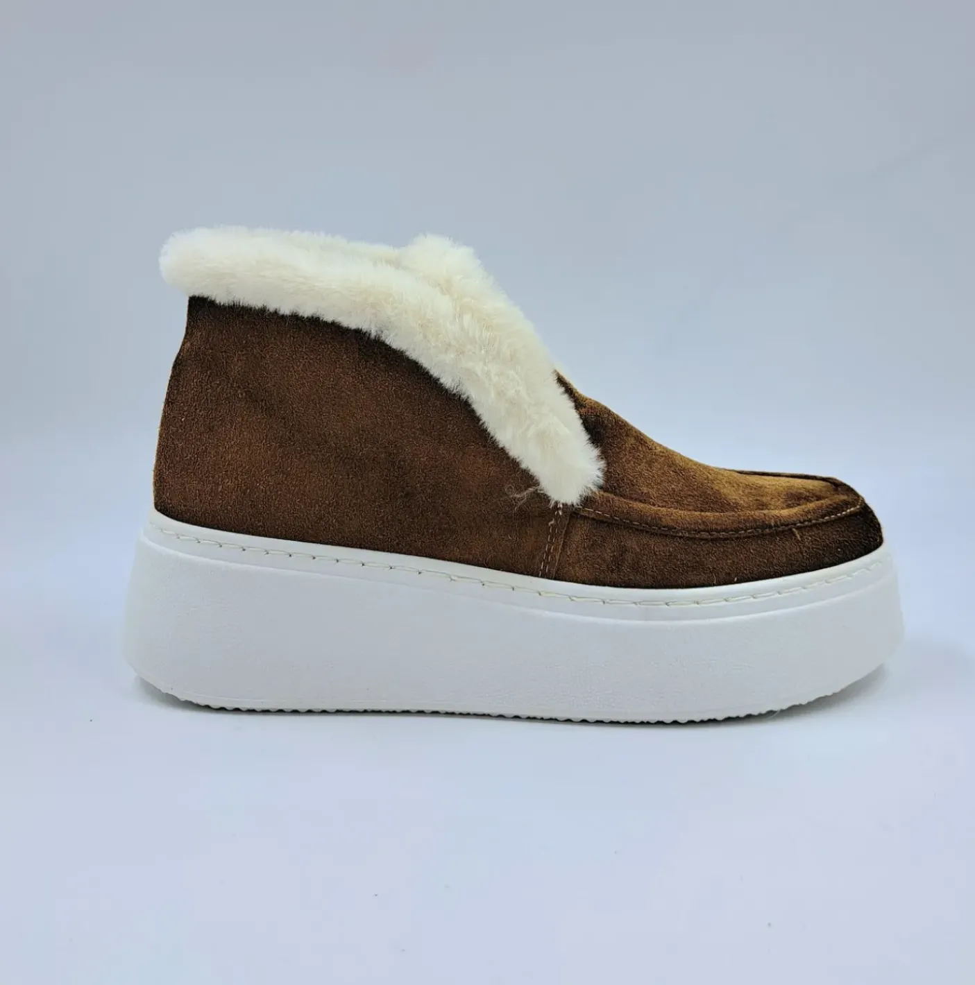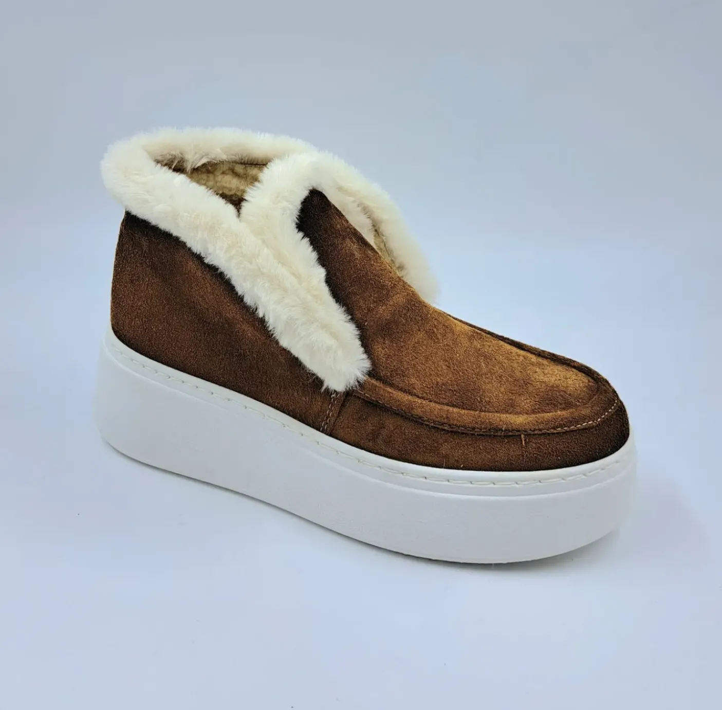 Stivaletti in vera pelle scamosciata. Rivestiti internamente in lana e pelliccia ecologica. Soletta in lana ecologica. Fondo gomma 5,5cm.