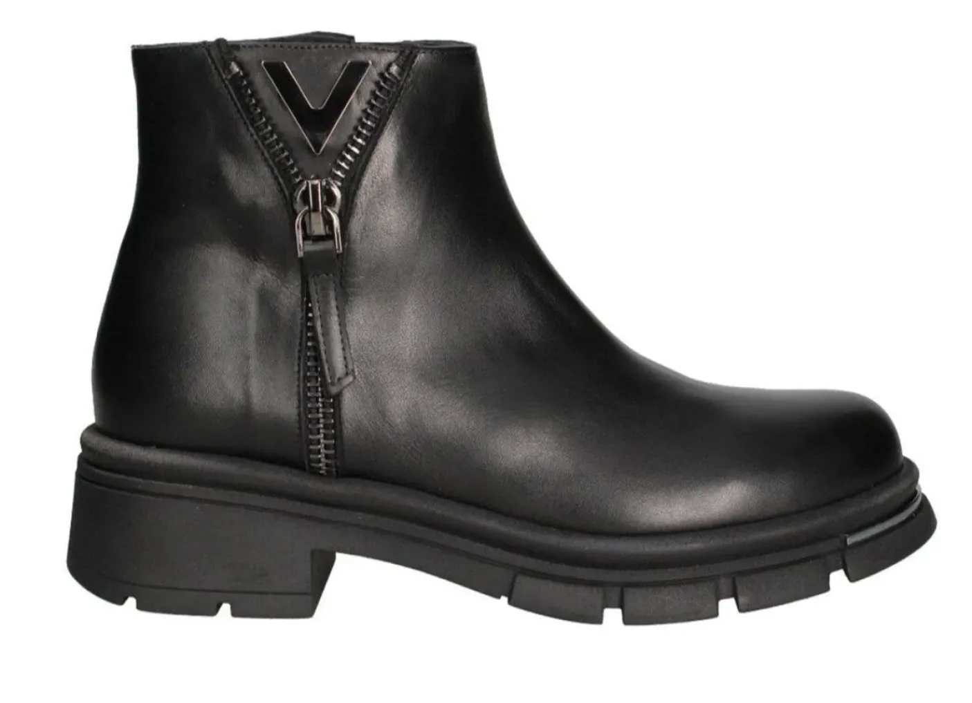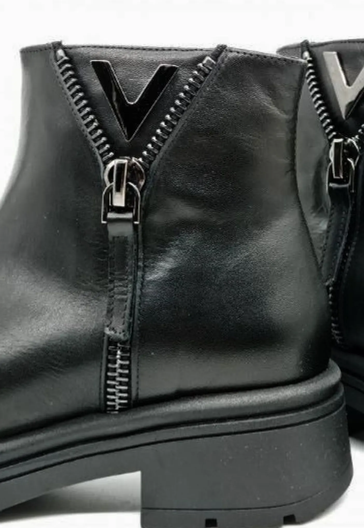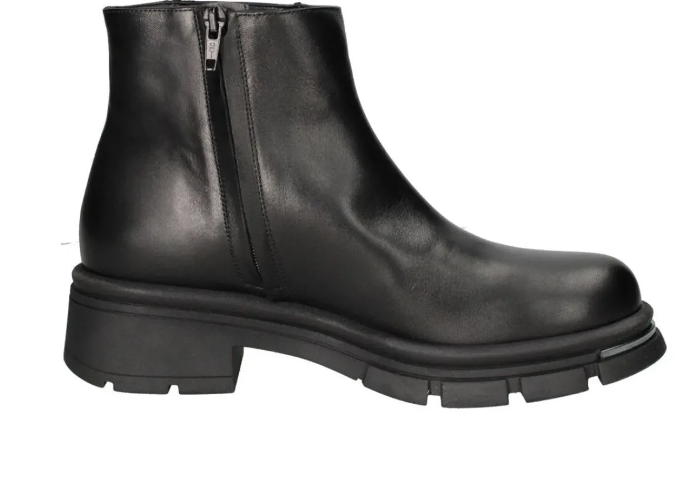 Stivaletti in vera pelle, rivestito internamente in pelle. Applicazione zip e logo laterale decorativi. Fondo gomma 4,5cm con applicazione metallica anteriore. Gambale 12cm