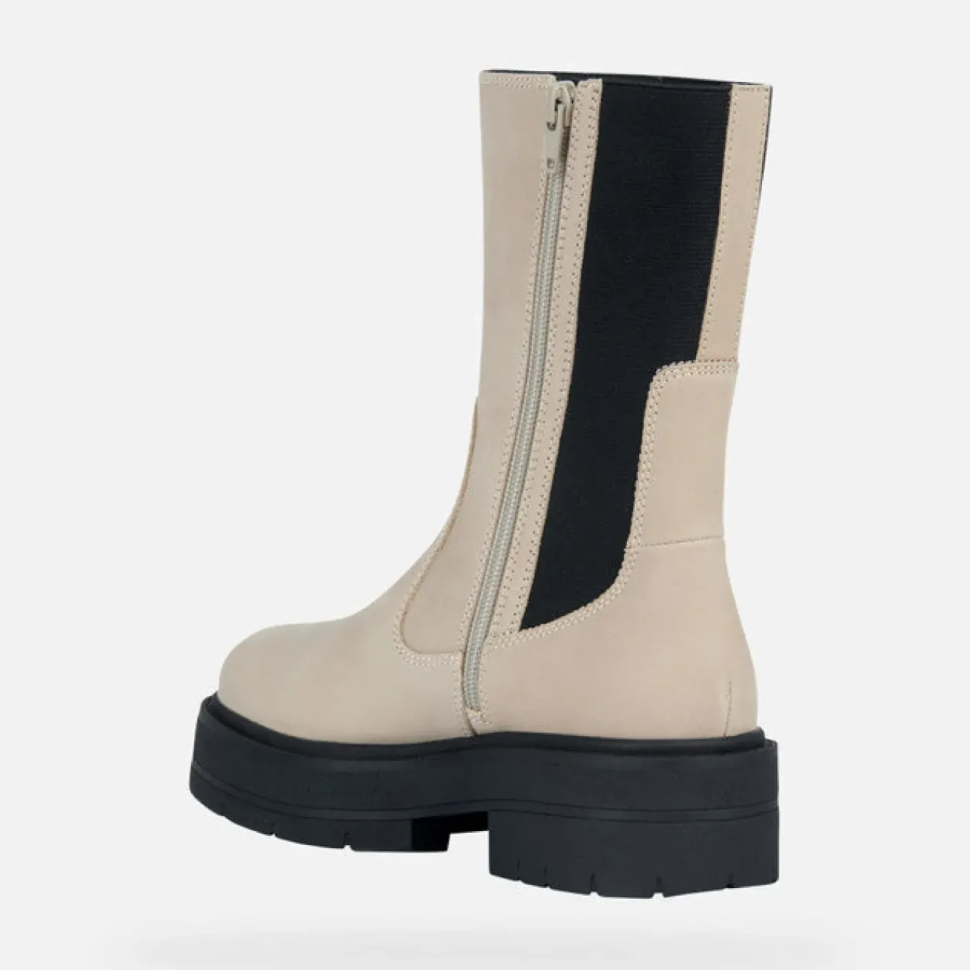 Stivaletti in pelle con elastico laterale. Rivestito inernamente in tessuto. Soletta in cuoio. Chiusura con zip. Fondo brevetto GeoxRespira