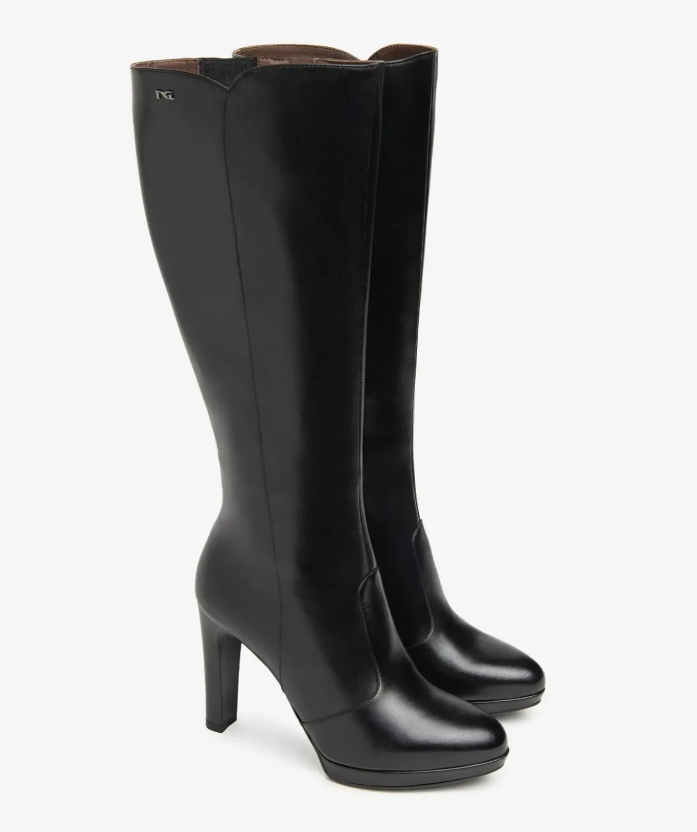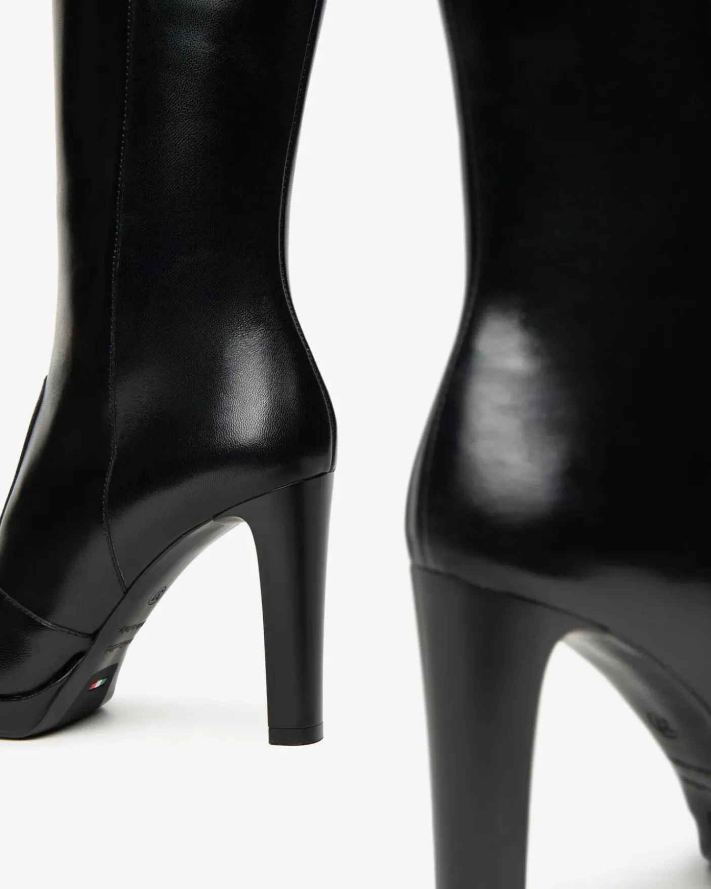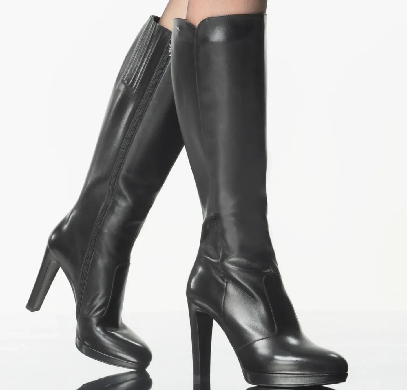 Stivali in vera pelle. Rivestito internamente in pelle. Chiusura con zip laterale. Fondo gomma tacco 10cm, plateau 1,5cm