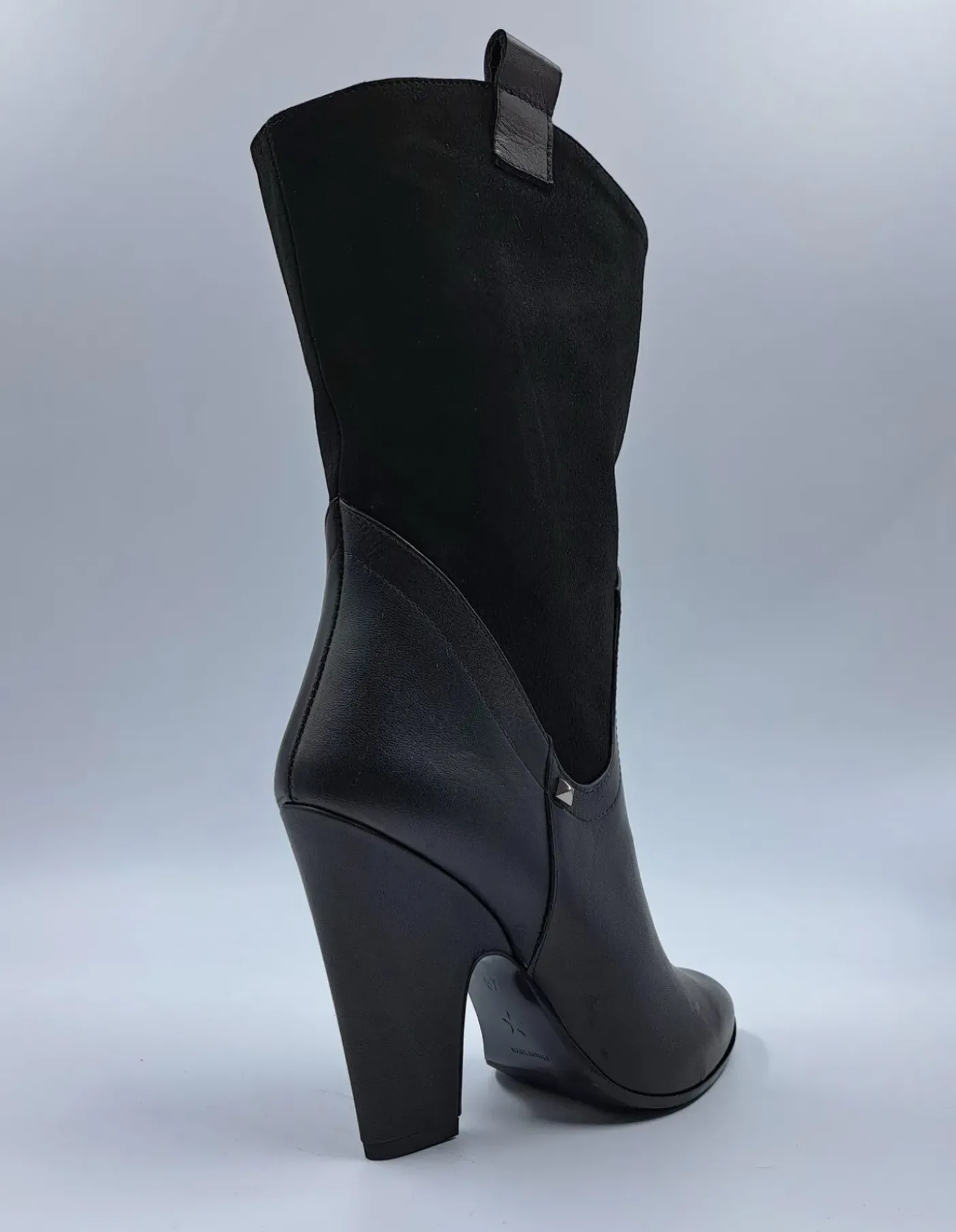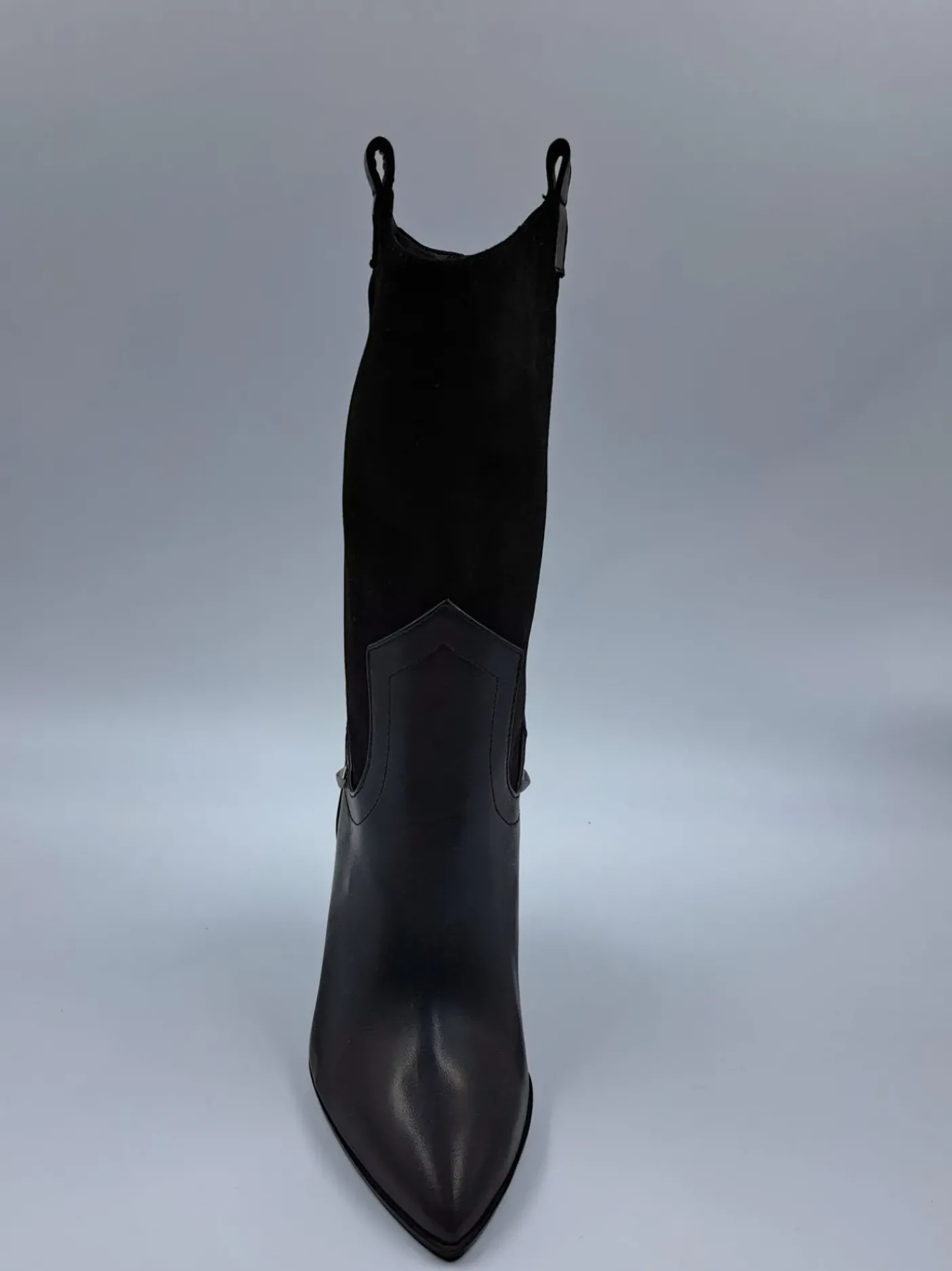 Stivali in vera pelle morbida e camoscio. Rivestito internamente in pelle. Soletta in pelle. Tacco rivestito 10,5cm. Altezza gambale 20cm