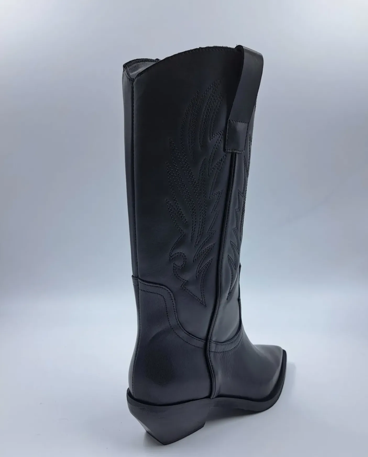 Stivale modello Texan in vera pelle, decorazioni ricamate. Rivestito internamente in pelle. Tacco 5cm, gambale 30/33cm.