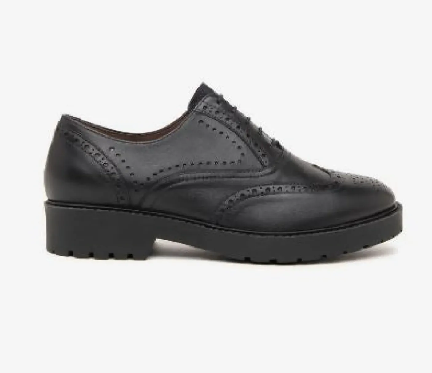 Stringate in pelle con decorazione coda rondine. Rivestita internamente in pelle. Chiusura con lacci. Fondo gomma tacco 3.5 cm.