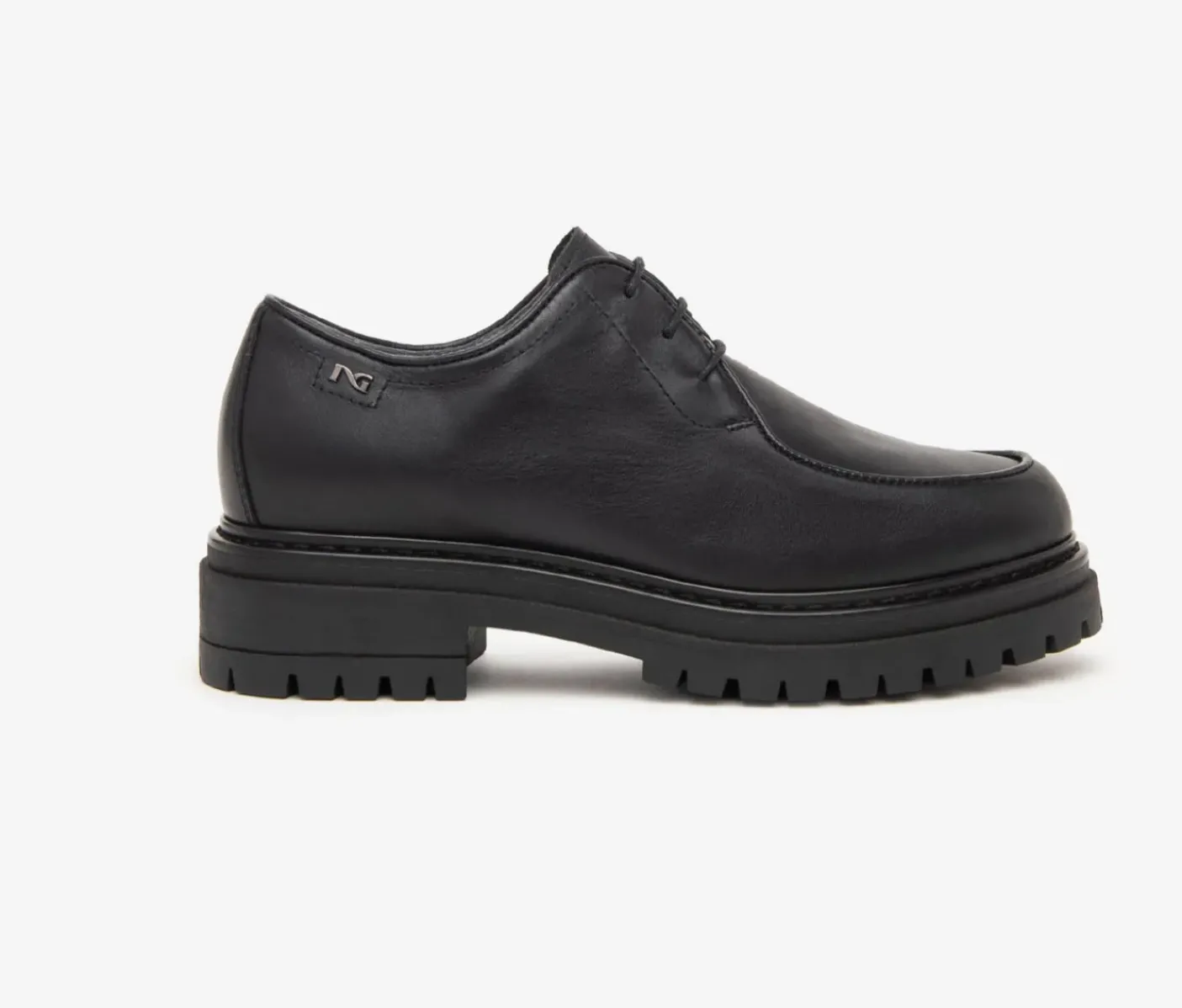 Stringate in pelle. Rivestita internamente in pelle. Chiusura con lacci. Fondo gomma tacco 4 cm. Calzabilità comoda