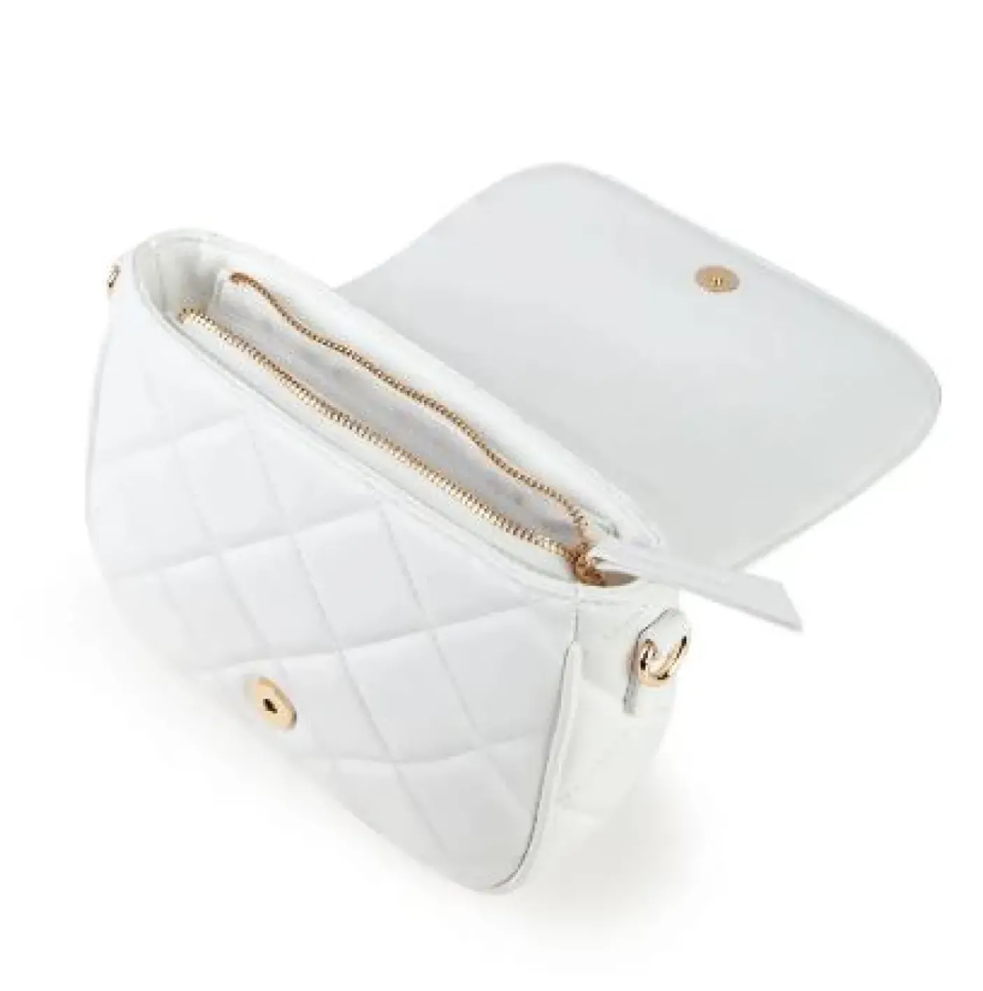 Tracolle in ecopelle effetto matelassè, Rivestita internamente in tessuto logato. Tasca interna zip. Chiusura con zip e patta clip. Logo su patta maxi lettering. Tracolla ecopelle regolabile
