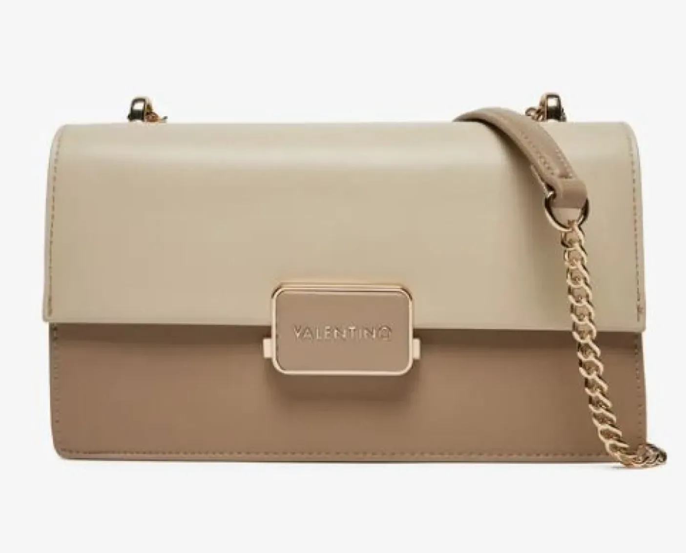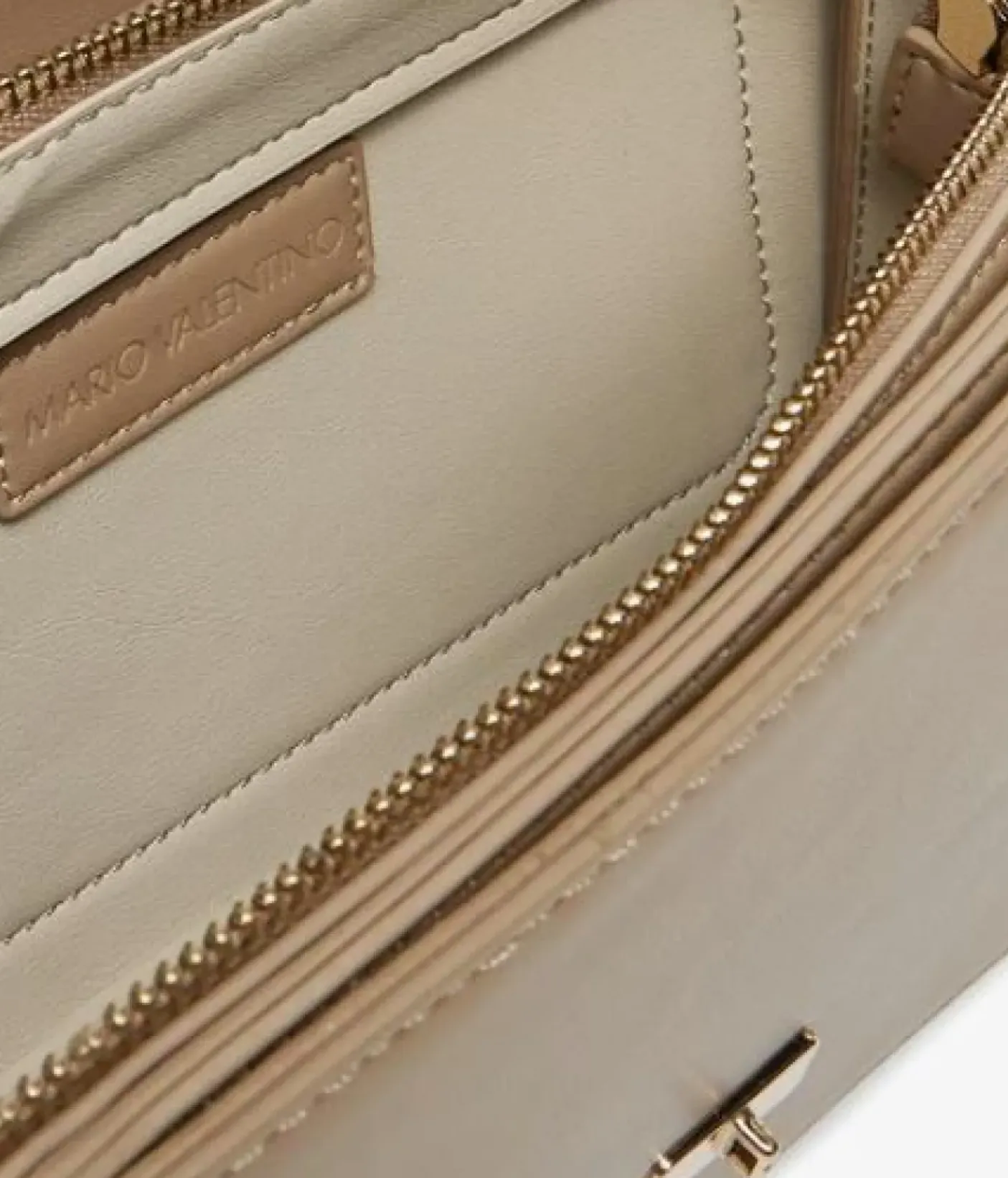Tracolla in ecopelle. Tasca interna portaoggetti. Logo frontale metallo. Chiusura con patta e zip. Tracolla catena metallo e inserti ecopelle.
