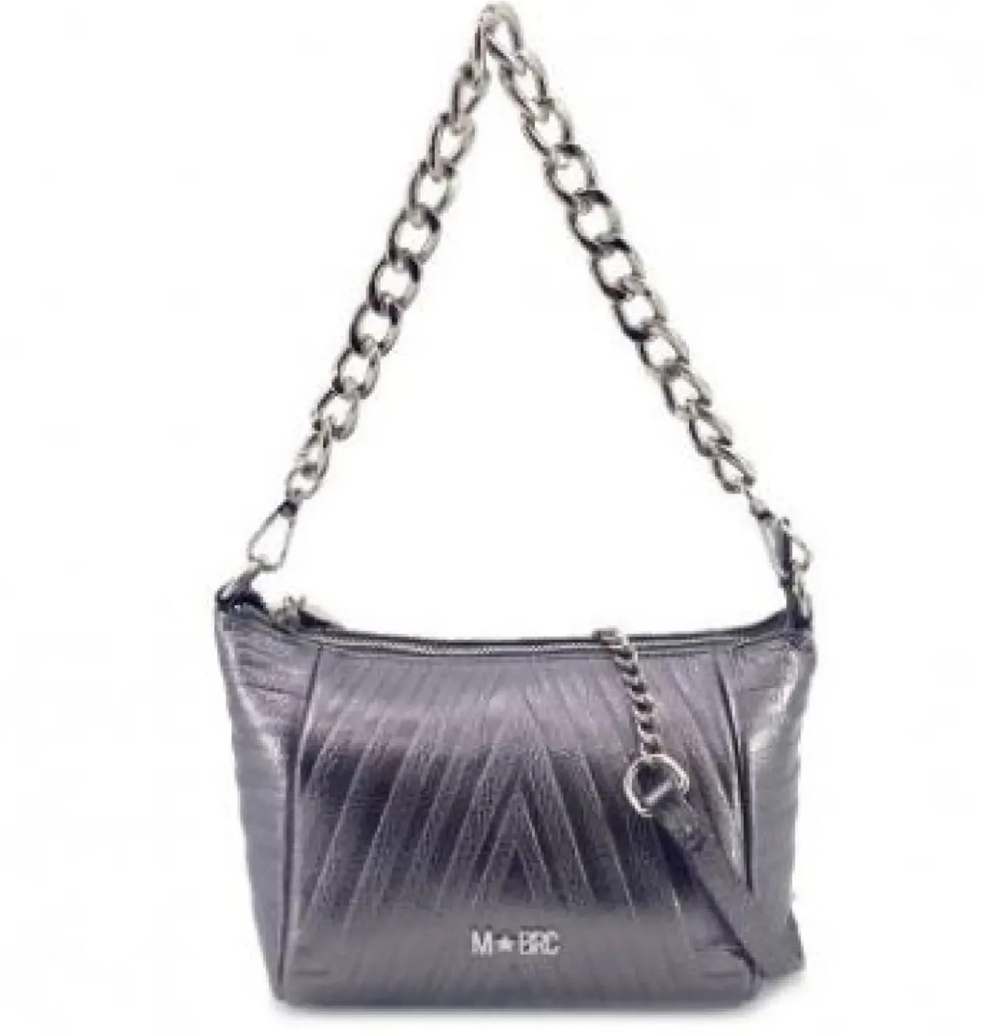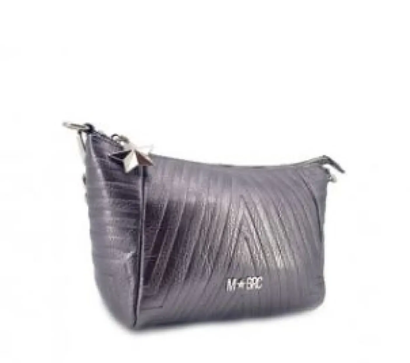 Tracolla in vera pelle con dettagli argento. Rivestita internamente in tessuto logato. Tasca porta oggetto. Chiusura con zip. Tracolla in pelle e metallo con charms stella. Manico in metallo.