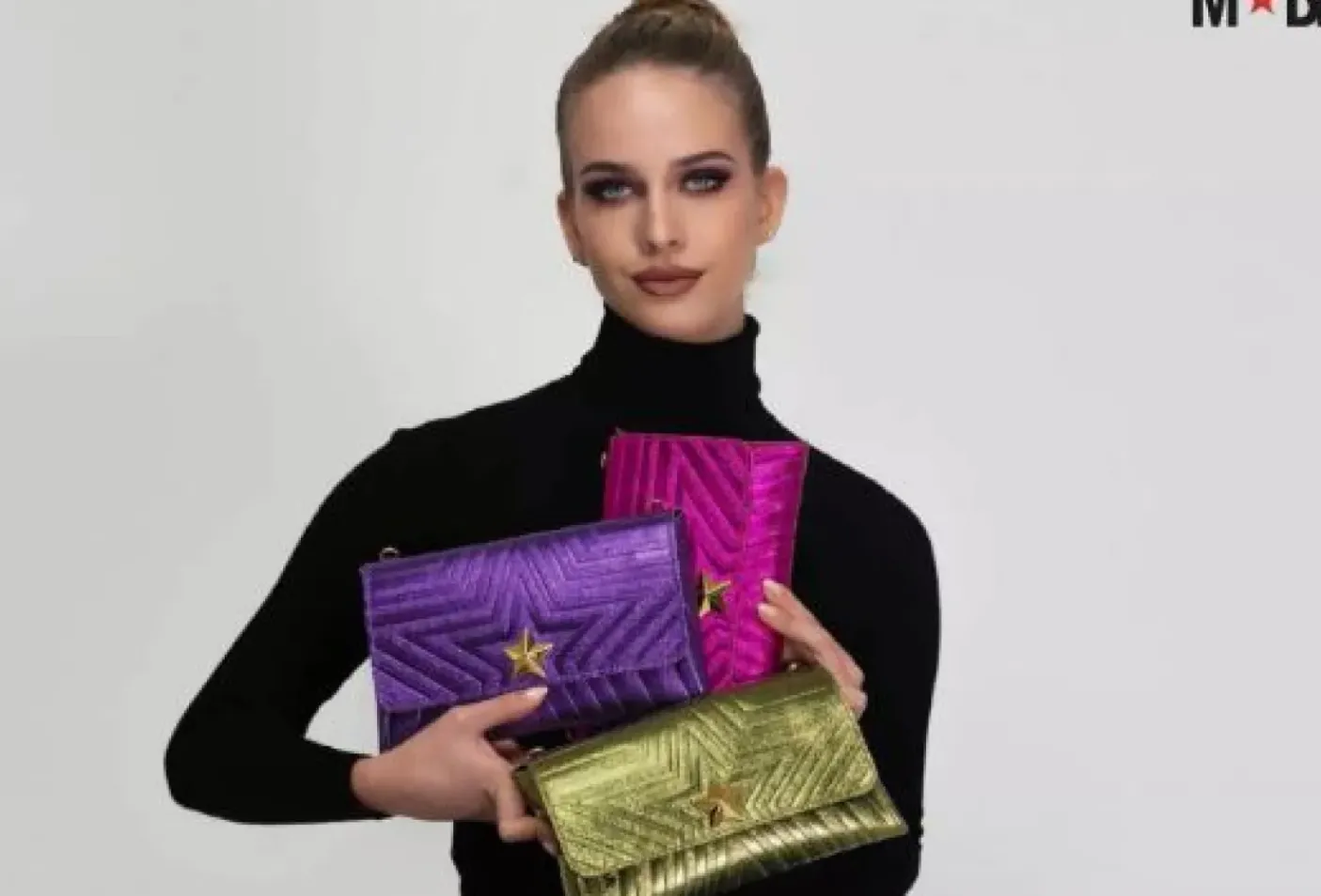 Tracolla Pochette in vera pelle con lavorazione lucida. Stella in metallo logo frontale. Borsello interno asportabile. Chiusura con patta . Tracolla in catena metallica oro. Piatta.