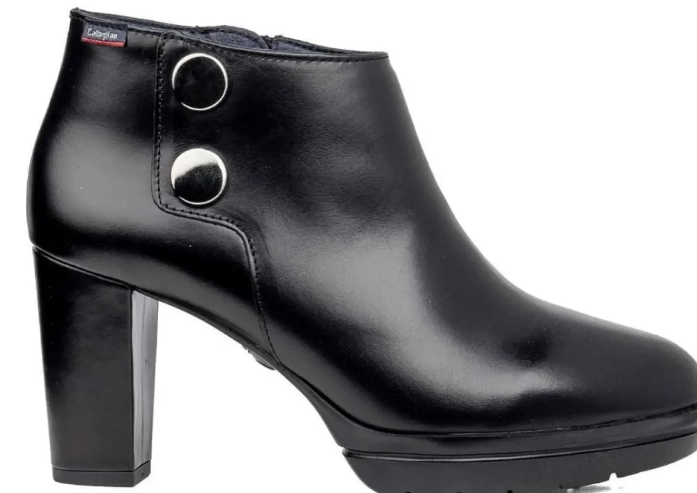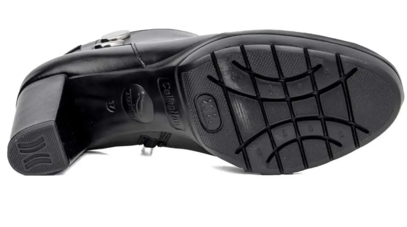 Tronchetto in vera pelle, materiale ultra leggero e molto flessibile che ammortizza il peso del corpo. Fondo in gomma, tacco 9cm.